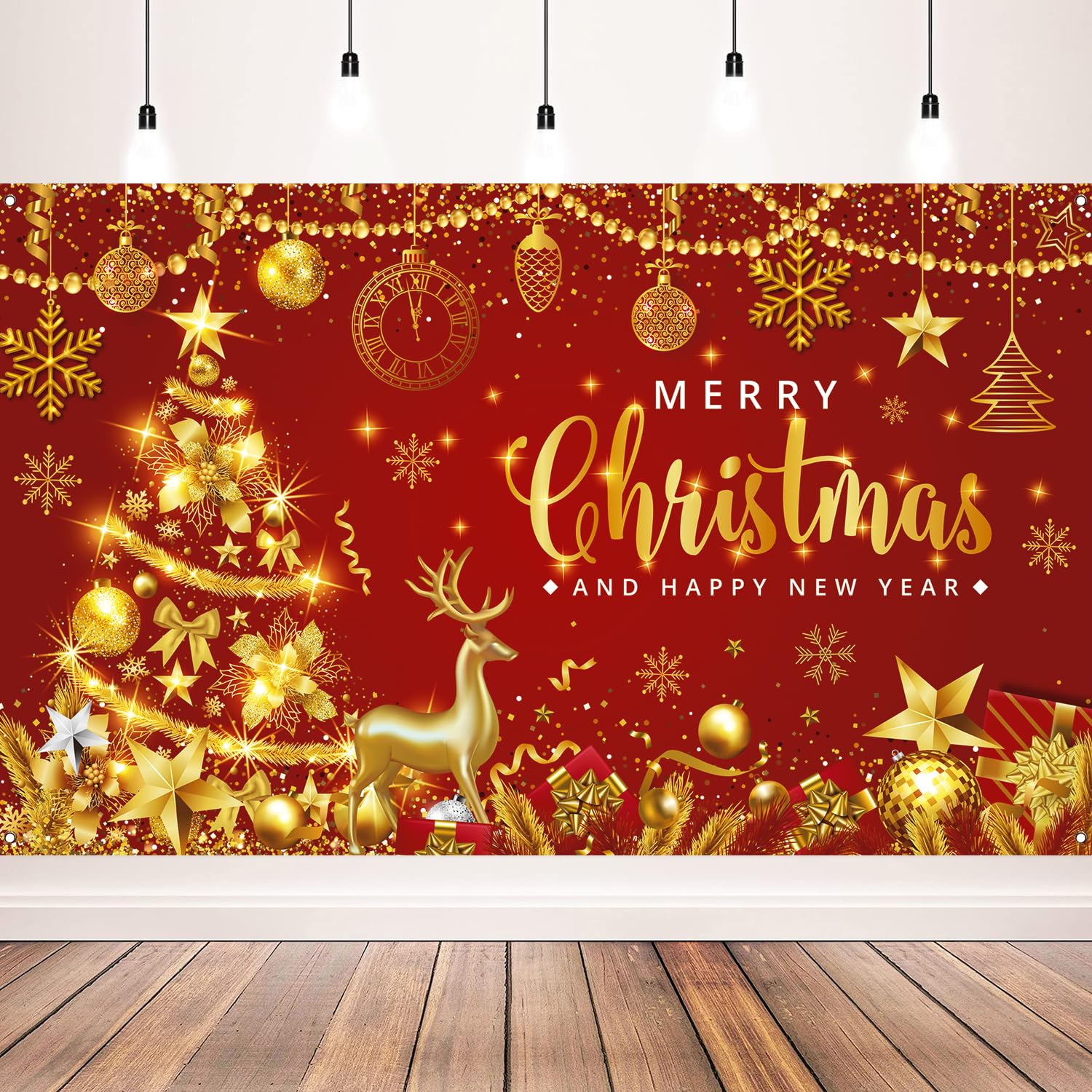Red Gold Christmas Backdrop - Merry Christmas Banner for Xmas New Years Eve Party Decorations, 71x43inch