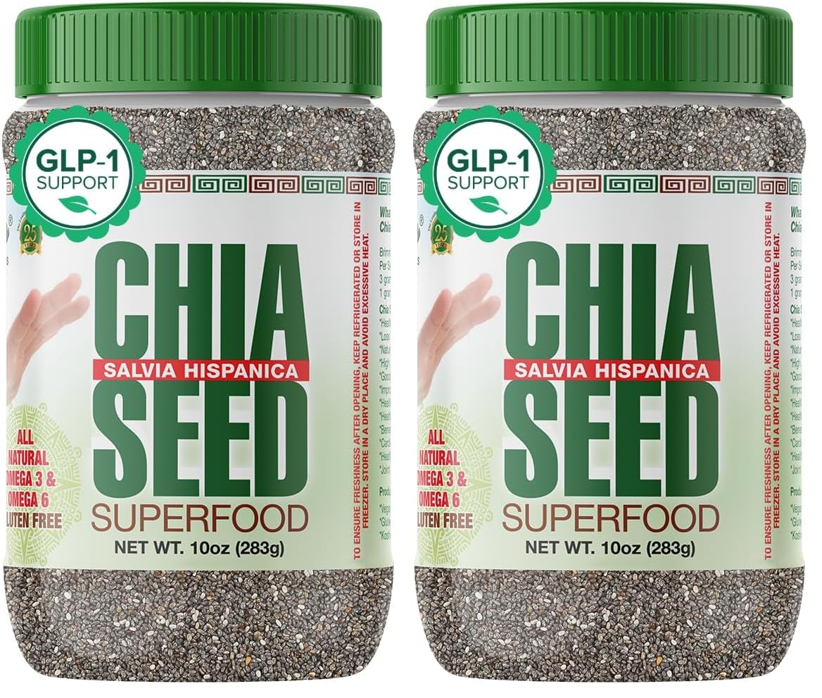 Sanar Naturals Chia Seeds - Omega-3,Protein,Fiber Supplement - GLP-1 Support - Keto and Paleo Friendly - Vegan,Non-GMO,Gluten Free,10 oz,(Pack of 2)