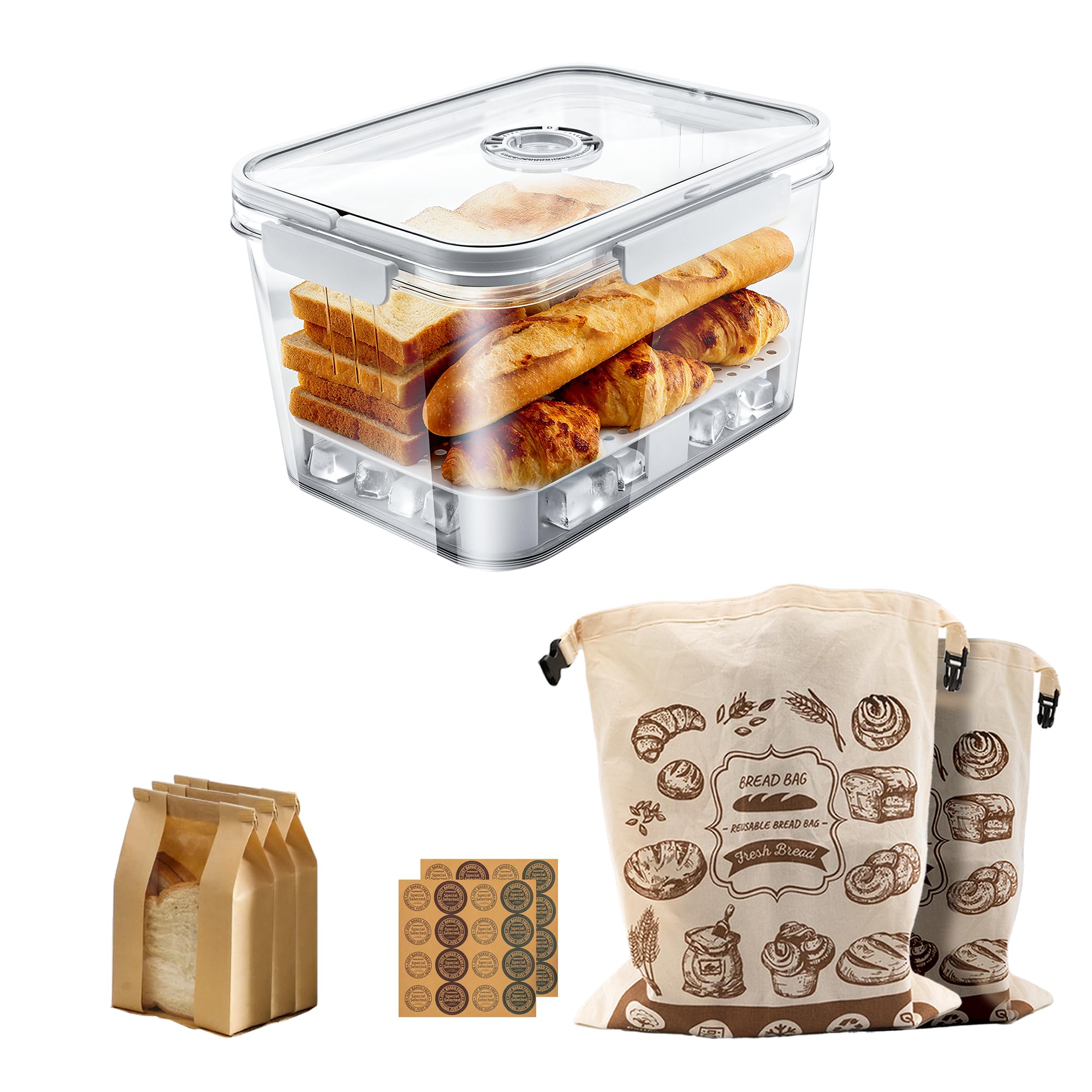 NORIRUN 25Pack Bread Box Set, 11in Bread Storage Box with Bread Storage Box with Time Recorder, Bread Keeper for Homemade Bread, Toast and Cookies, Includes Linen Bags, Paper Bags, Stickers