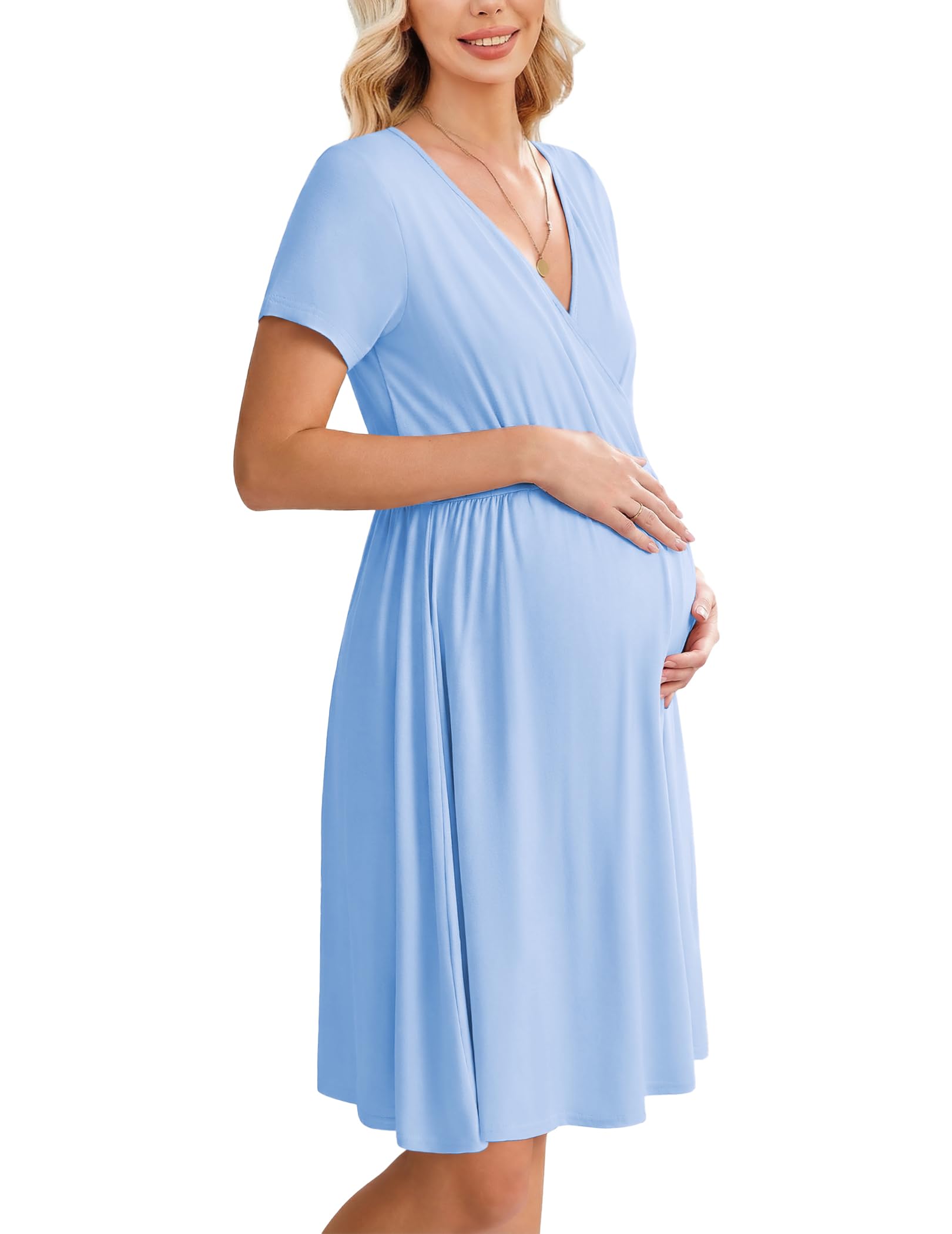 Great deal on Ekouaer Women 3 in 1 Labor and Delivery Gown Split Front Flap Maternity Hospital Dress Nursing Nightgown for Breastfeeding at Amazon.