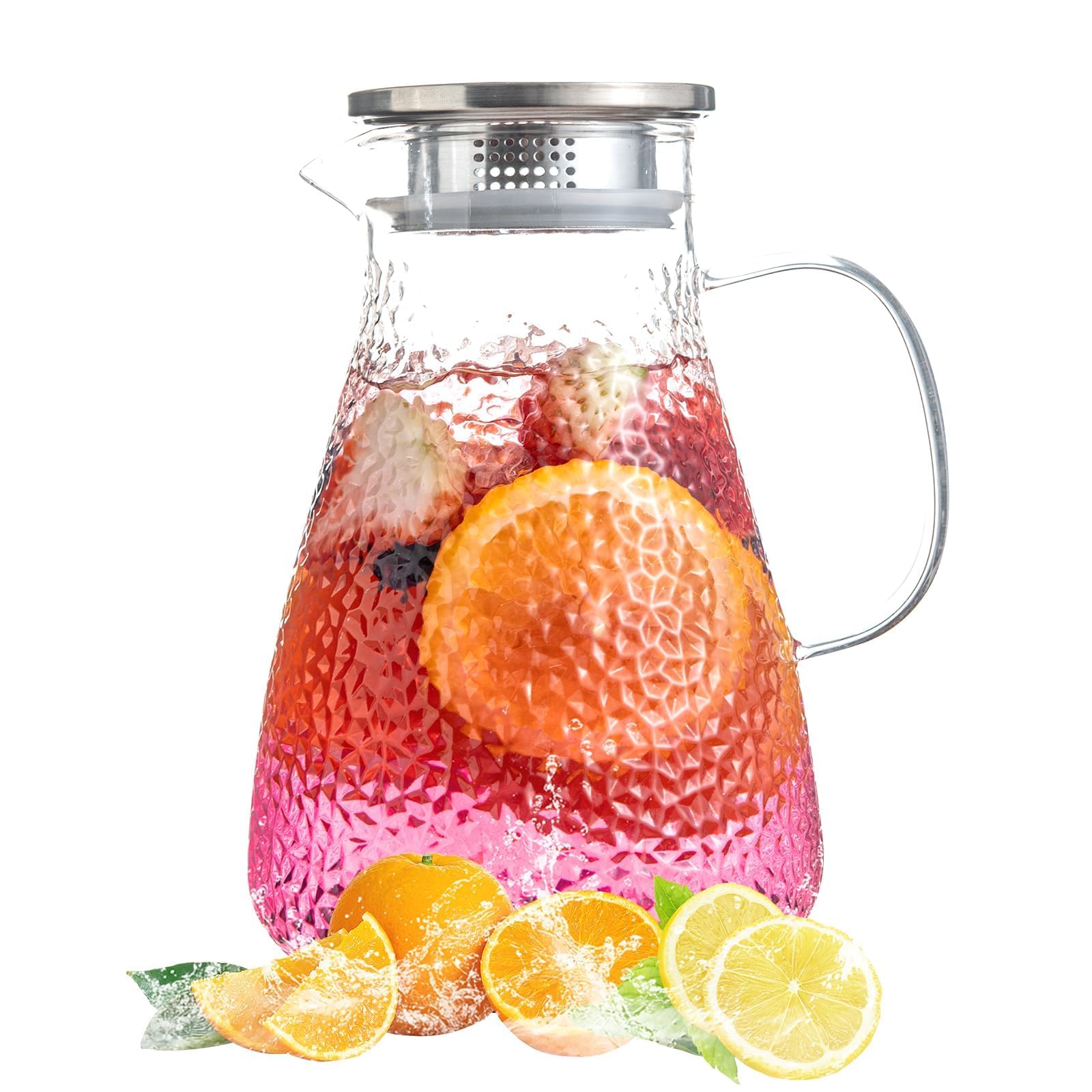MRZIKPO 2.0 Liter 68 oz Glass Pitcher with Lid and Spout, Glass Carafe for Hot/Cold Water, Large Iced Tea Pitcher for Coffee, Milk,Juice and Homemade Beverage,Iced Coffee, and Container for Drinks