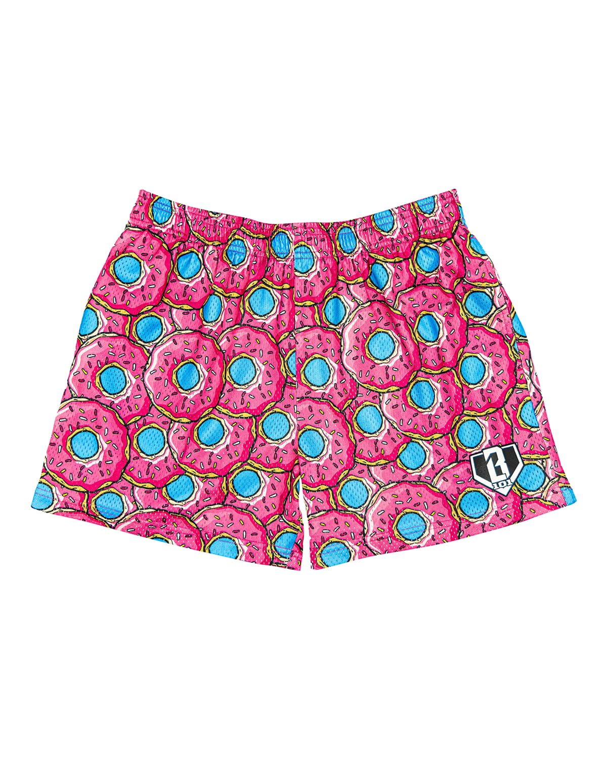 Baseball Lifestyle 101 Boy's Donut Strawberry Mesh Shorts w/Side Pockets and Elastic Waist, 5 inch Inseam, Youth Sizes S-XL