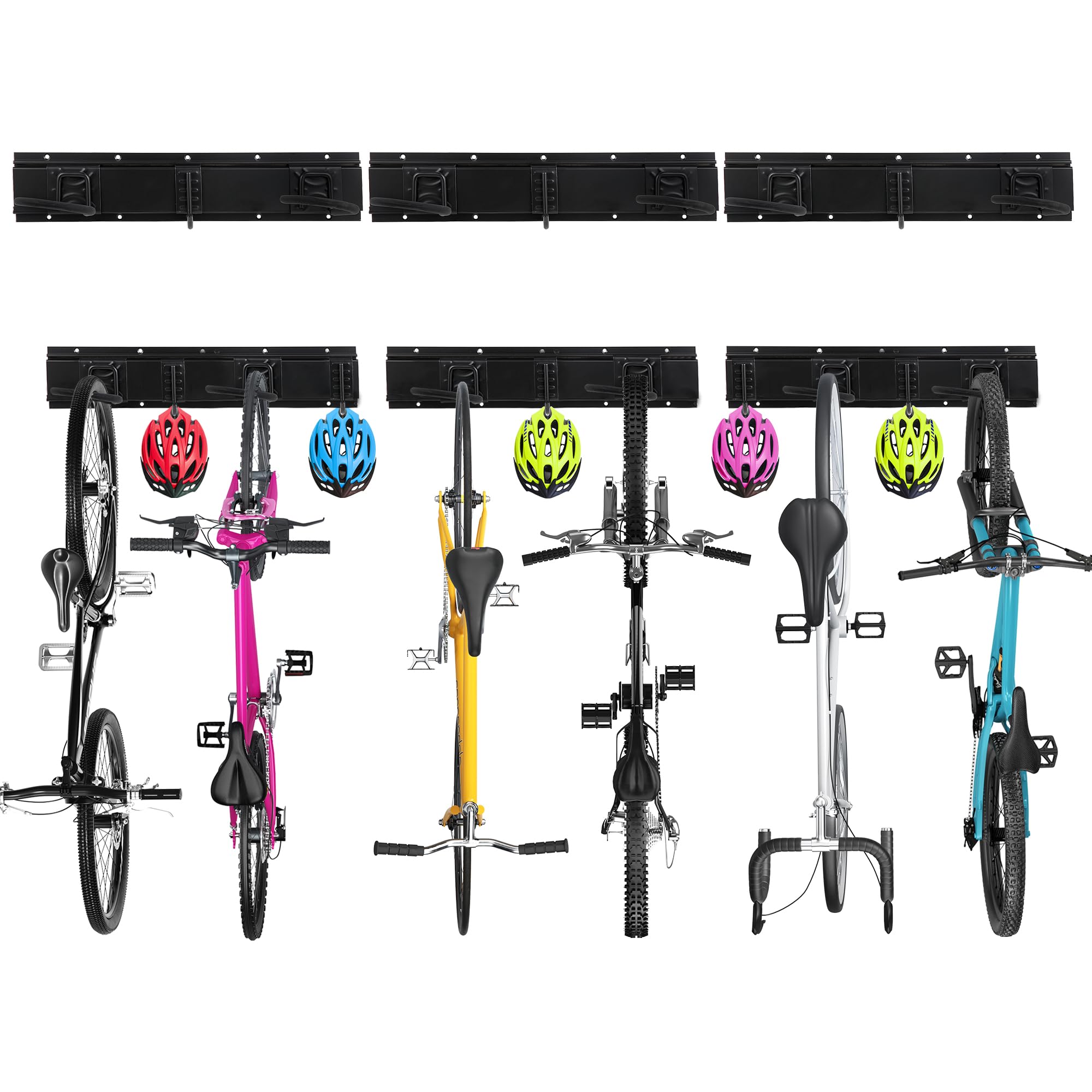 Contains: 3 pieces of 20 inch rails + 6 pieces of bicycle hooks + 5 helmet hooks