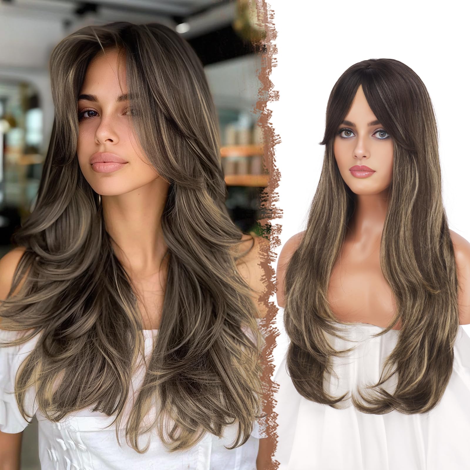 Layered haircuts have long been an all-time favorite as they complement various face shapes without sacrificing versatility or stylishness. This adaptable layers hair style gives you countless options to experiment with, allowing you to showcase your unique style and personality. Elevate your long locks with Textured Layers, a stunning choice that adds dimension and movement to your hair! These layers create a dynamic and effortless look, perfect for those who want to embrace their natural texture while adding a touch of style. Made of high quality heat resistant synthetic material, FESHFEN wigs take on a natural shine and a very soft touch. This hair wig inner cap comes with the 2 elastic strap, which can be put to a fixed position to suit different head sizes. This provides additional comfort, as well as confidence your wig won't fall out easily. This natural long layered wig is suitable for all types of skin colors and ages. It is perfect for daily life, dance party, concerts, cosplay, Halloween, etc. If you're struggling with hair loss or thin, it can be a good choice. And it's also a good idea for gifting to family and friends.