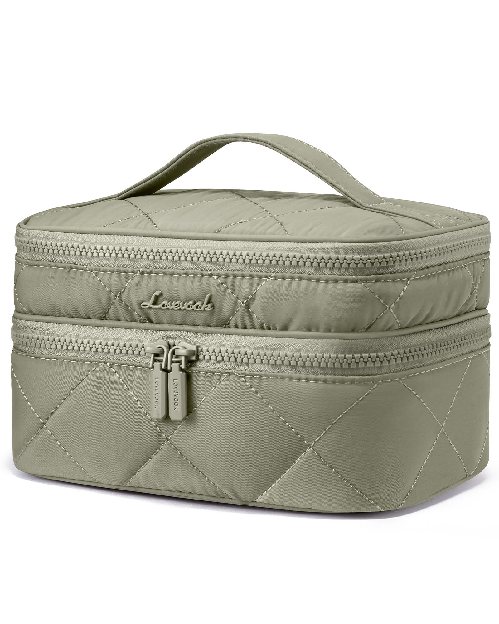 LOVEVOOK Travel Makeup Bag for Women Transform your travel routine with the LOVEVOOK Travel Makeup Bag—a magnificent symphony of style, organization, and luxury. Size: M:8.66 × 5.12 × 5.51 in L:10.24 × 5.31 × 5.96 in Material: Premium, water-resistant, and wrinkle-proof fabric Color: Elegant hues in Morandi colors:Black/Pink/Khaki/Off-white/Green Supreme Organization & Capacity: Step into a world where everything you need is at your fingertips. The LOVEVOOK Travel Makeup Bag features an innovative large-capacity design that brings order to your beauty essentials. With dedicated sections for jewelry, brushes, toiletries, and lipsticks, it transforms packing into a delightful ritual of elegance and precision. Enjoy seamless access with dual-zip layers that lay everything before you, making hurried rummaging a thing of the past. Durable & Travel-Ready: Crafted from high-grade, durable materials, this travel bag is an unwavering companion through journeys and daily adventures alike. Its water-resistant and anti-wrinkle properties blend effortlessly with a lightweight build—for a soft touch experience that carries a promise of resilience. From your bathroom countertop to your suitcase, it’s designed to protect and accompany you, no matter the destination. Versatile Use for Every Occasion: From an everyday beauty savior to a travel essential, this makeup bag is as adaptable as your lifestyle demands. Whether it’s organizing your bathroom storage or serving as a chic travel or toiletry bag, it’s a seamless addition to any women's essential collection. Perfect for business trips, adventures in the wild, or just an ordinary day of elegance at home. Fashionable & Gift-Worthy: As much a feast for the eyes as a functional piece, the LOVEVOOK bag boasts a minimalistic style adorned in trending Morandi shades. Its double-compartment construction makes it a gift infused with thoughtfulness, ideal for birthdays, anniversaries, or as a tender self-indulgence. Care Instructions: To maintain the pristine look of your LOVEVOOK Travel Makeup Bag, simply wipe with a damp cloth. Avoid harsh chemicals to ensure longevity.