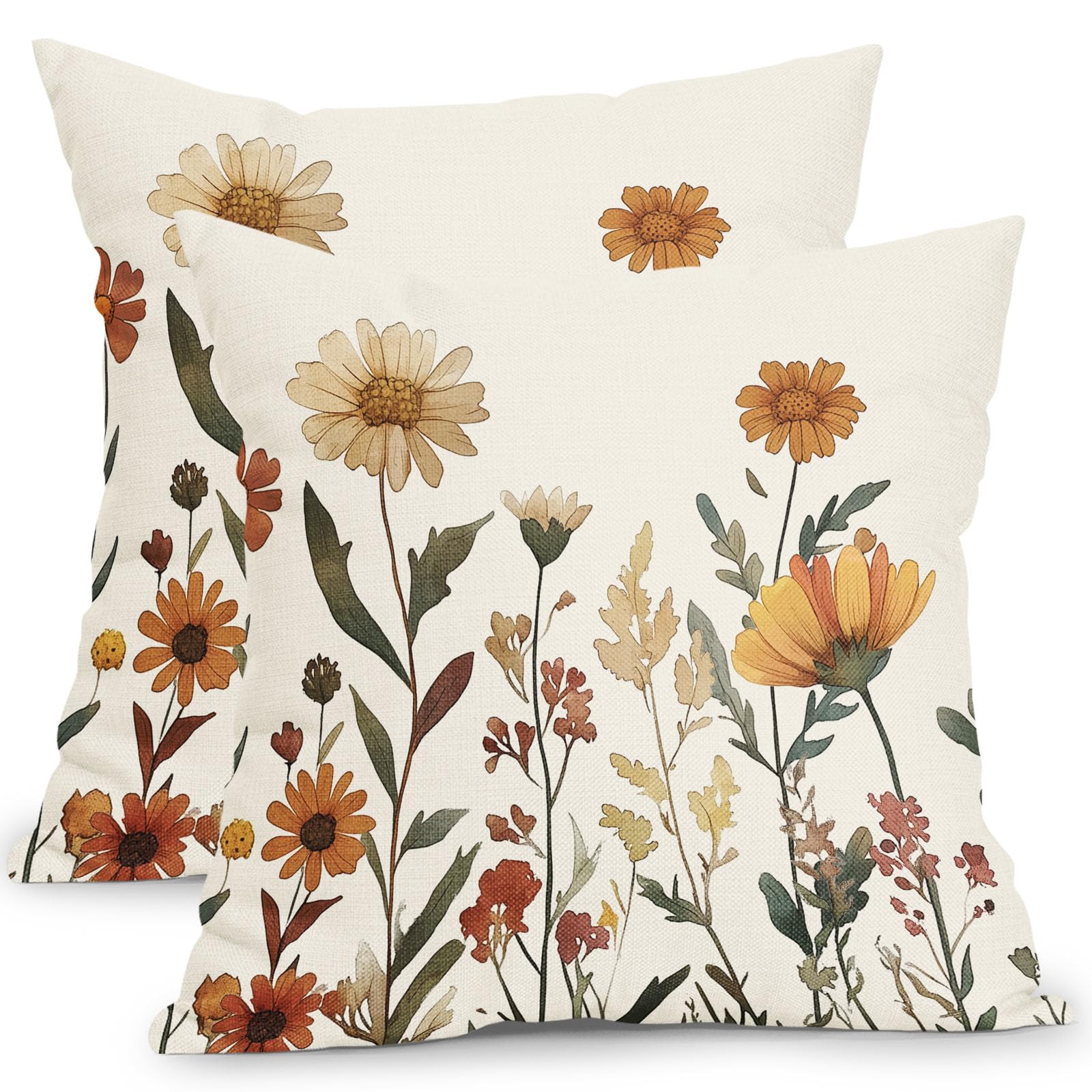 Ancordivo Fall Floral Pillow Covers 18x18 Inch Set of 2 Vintage Autumn Wildflower Pattern Outdoor Throw Pillows Thanksgiving Harvest Rustic Pillowcases for Bed Couch Home Decor