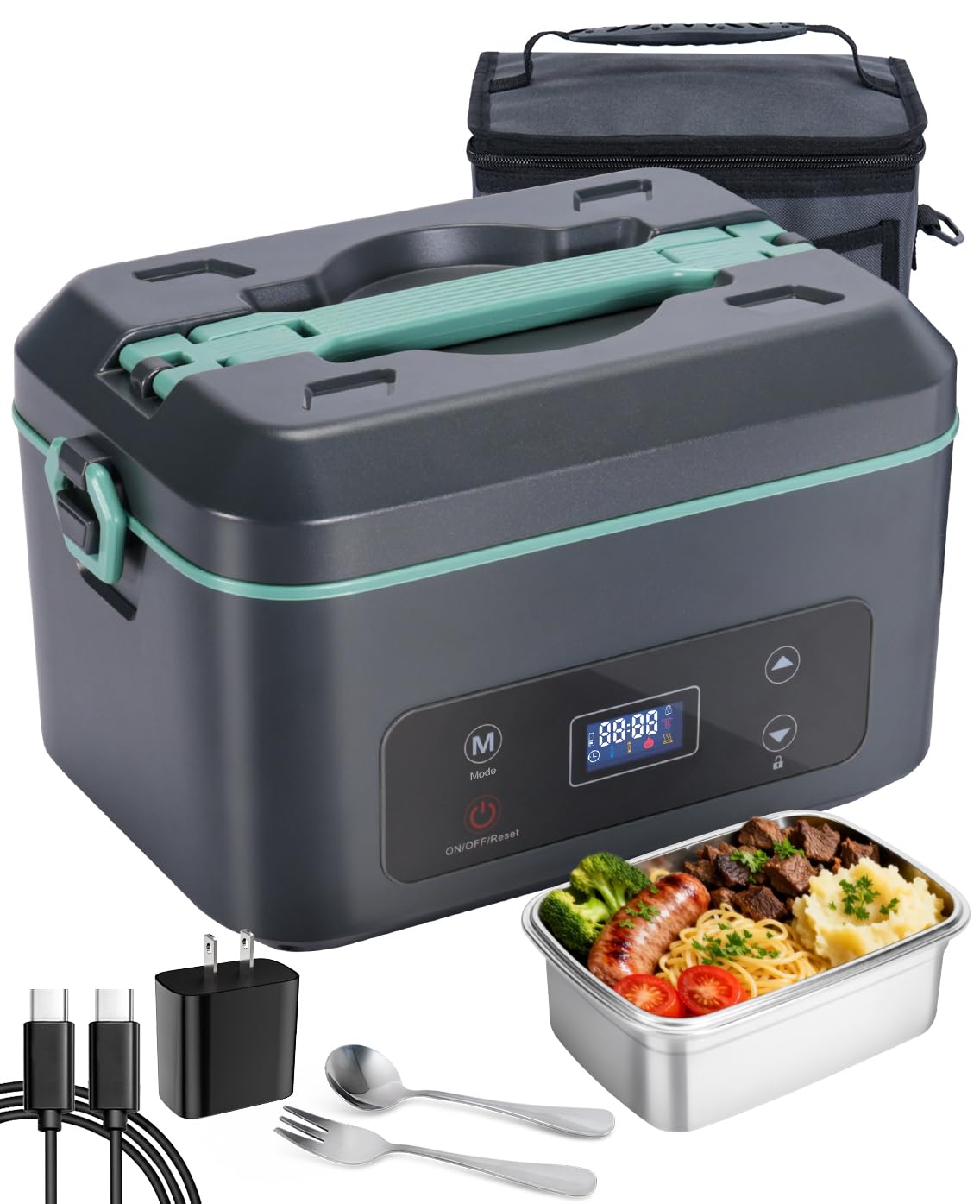 AIZOCO Cordless Electric Lunch Box for Adults, Heated Lunch Box Battery Powered with 5 Side Heating, Portable Food Warmer with 5.5 Cups Removable Container, Self-Heating Food Warmer for Work,GreyGreen