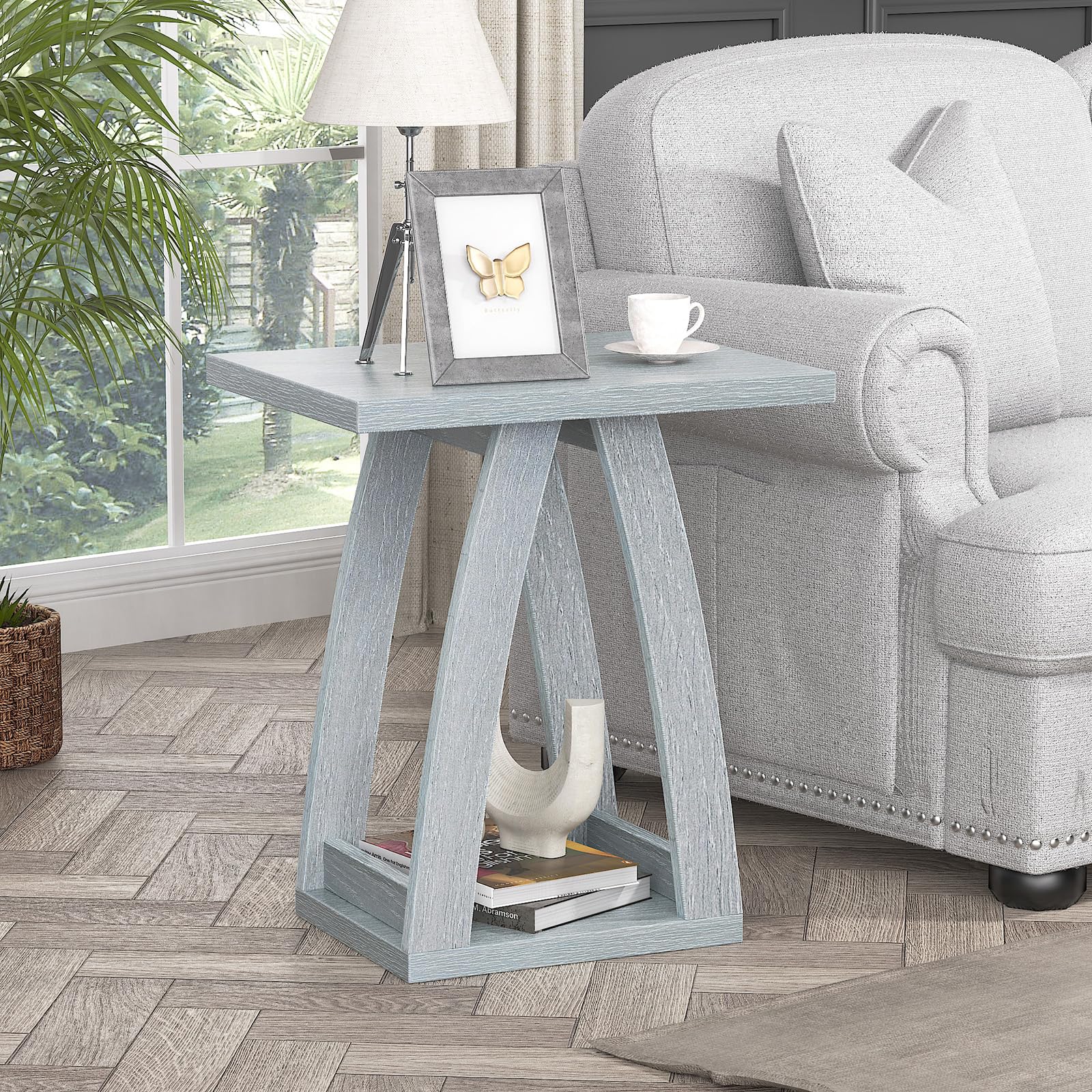 FJTFORME End Tables Living Room. Side Table Beside Sofa. Modern End Table for Living Room. Couch Side Table with Shelf. Slate Grey Wood Side Tables