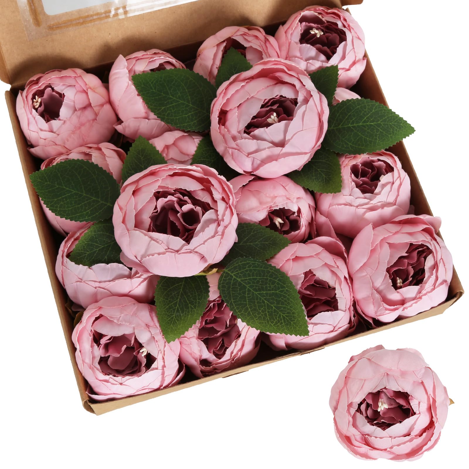 INSUNSIX 16pcs Pink Peonies Artificial Flowers 3.5'' Big Fake Peonies Bulk Faux Vintage Peonies Silk Flowers with Stems for Wedding Bridal Bouquets Centerpieces Table Decor Floral Arrangements (Pink)