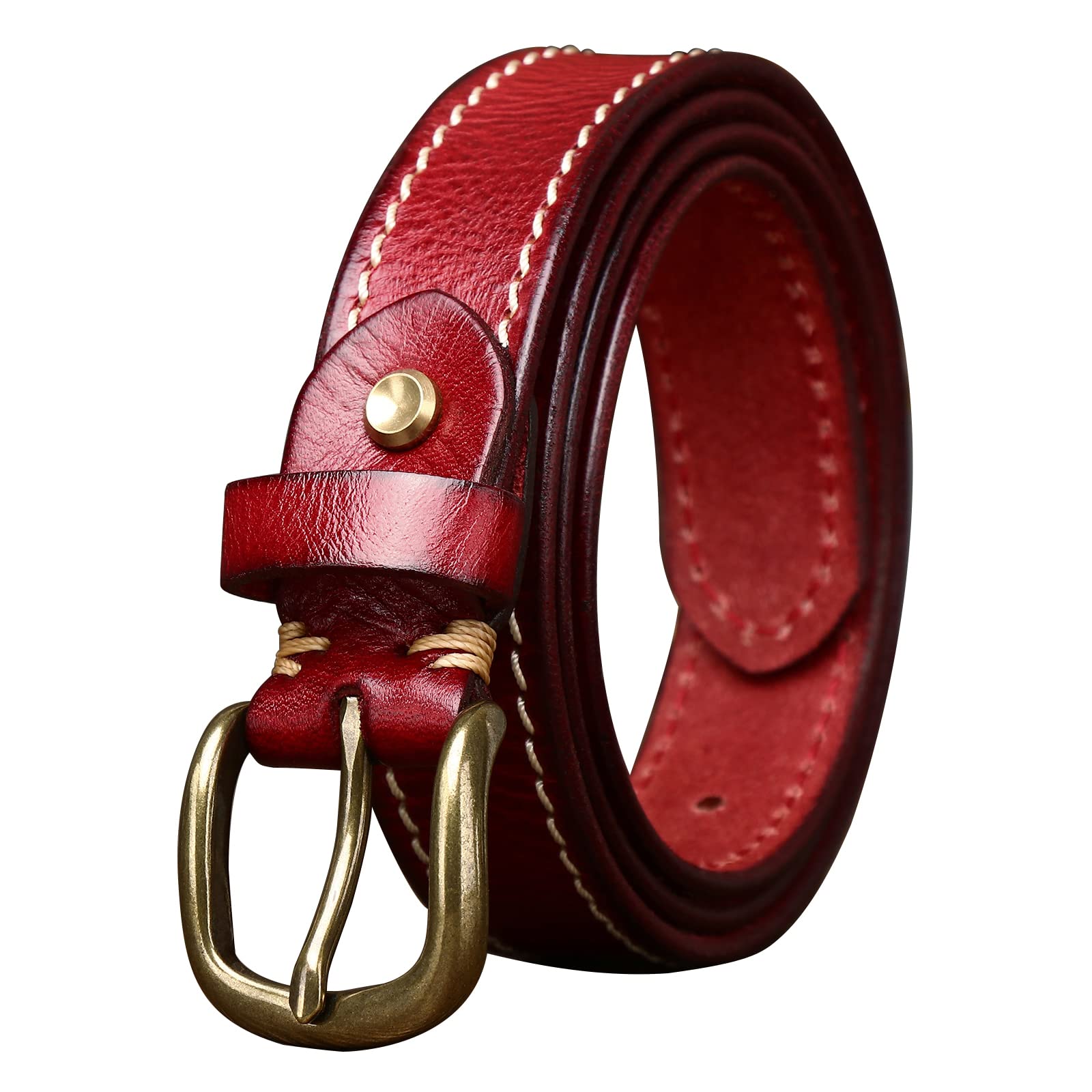 wolksprong Womens Belts for Jeans 1.1" Width Ladies Belts for Dresses Full Grain Leather Gold Buckle Belt Gift Box