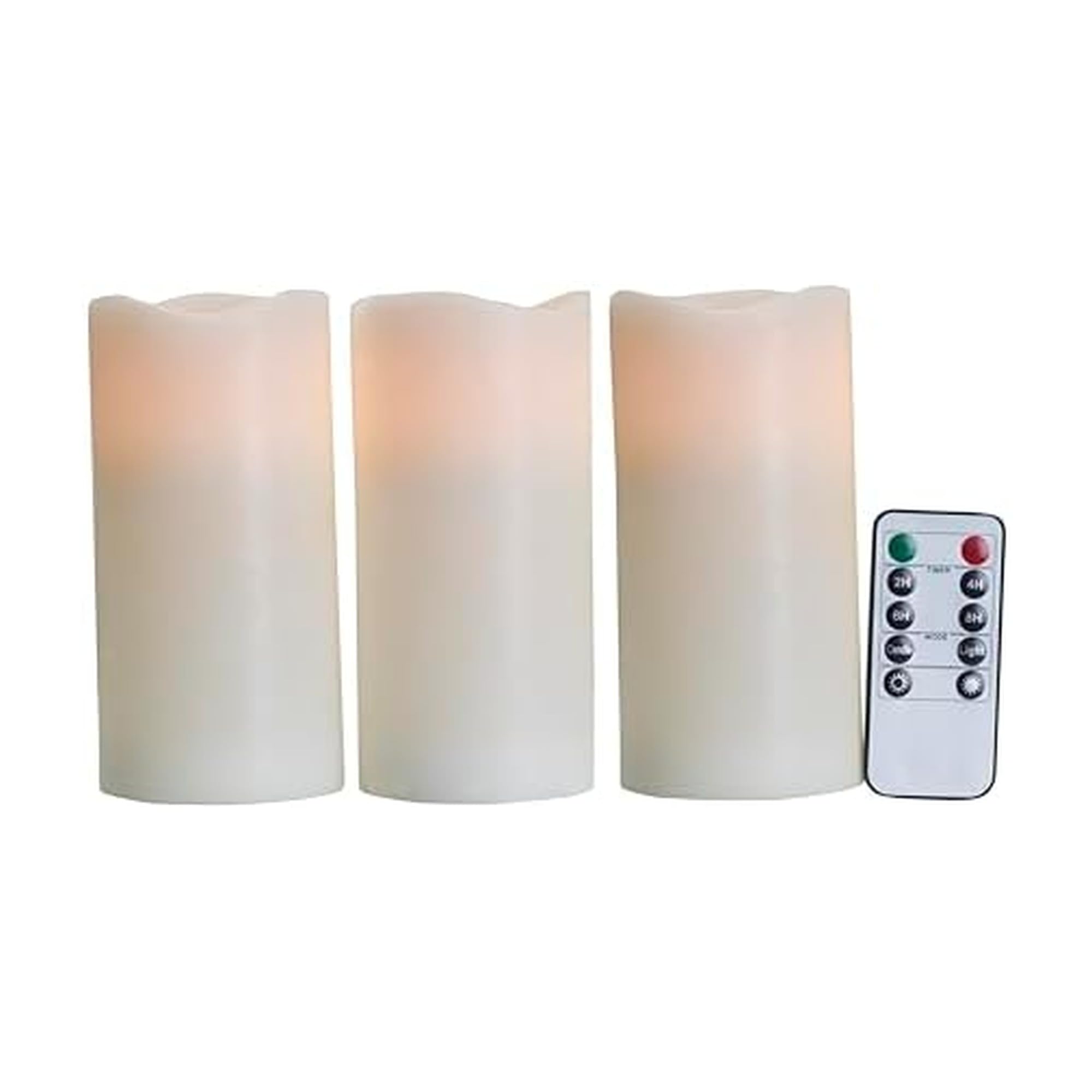 Mikasa Textured Wavy Top LED Pillar Candles, White, Set of 3 3x6 Inch