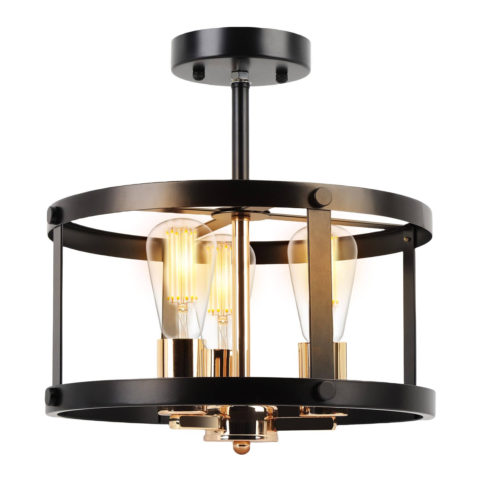 Gugxiom Semi Flush Mount Ceiling Light Black, 3 Lights Ceiling Fixture, Farmhouse Light Fixture for Kitchen, Hallway, Dining Room and Living Room (No Include Bulb)