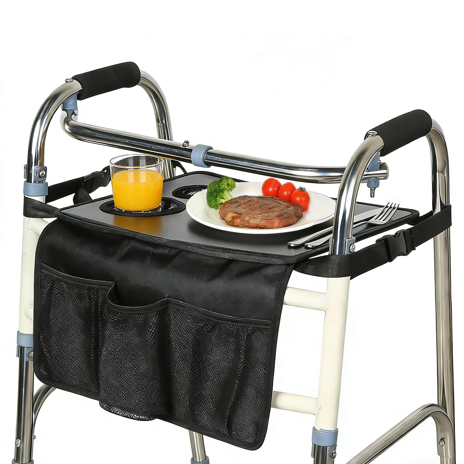 Walker Tray for Folding Walker, Fold-able Walkers Accessories for Elderly,Tray for Walkers for Seniors Detachable with Cup Holder, Trays Table Fits Most Standard Walker
