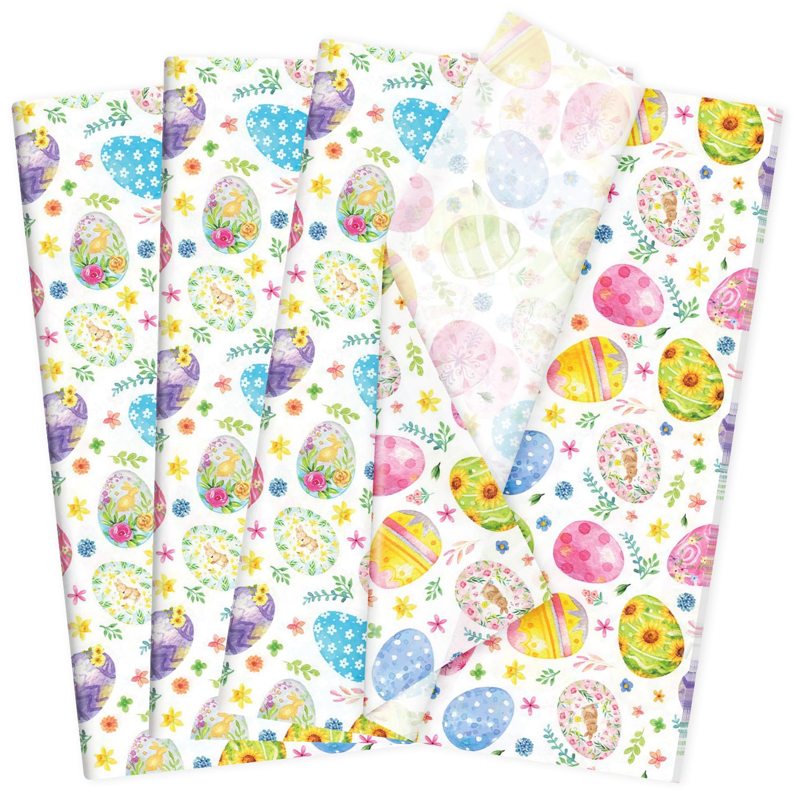 60 Sheets Easter Egg Tissue Paper, 20x14'' Colorful Eggs Flower Printed Gift Wrapping Paper for Easter Spring Birthday Wedding Baby Shower Party DIY Crafts