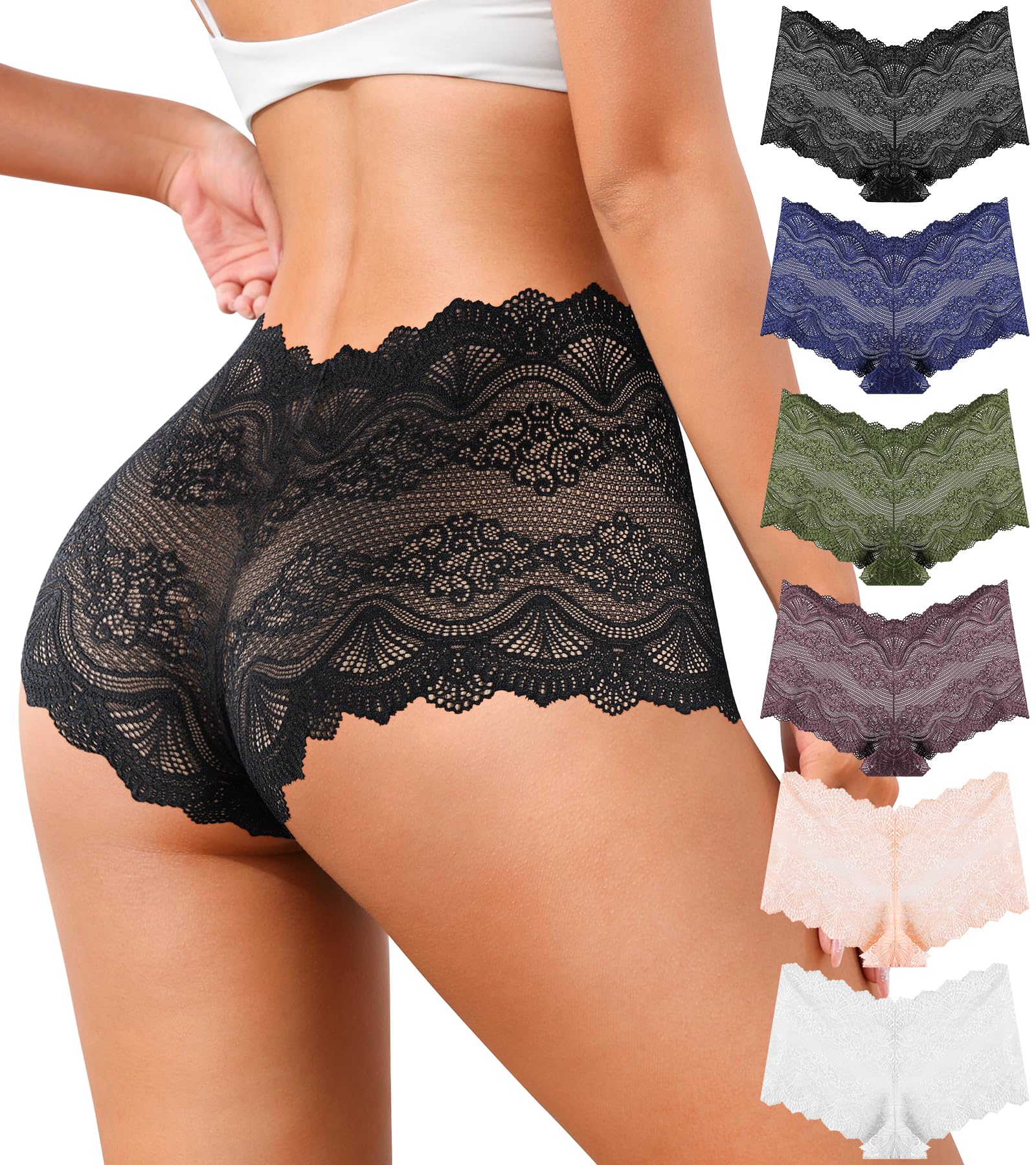 QOVOQ Sexy Womens Underwear High Waisted Lace Panties V Waist Soft Lightweight Breathable Ladies Briefs 6 Pack