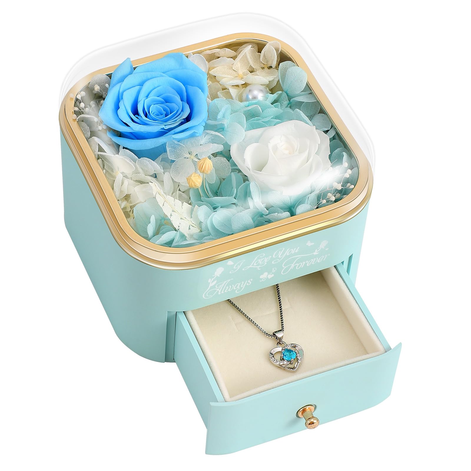 minstely Preserved Rose Gift Box with Necklace for Women, Forever Real Rose Jewelry Box for Mom Wife Girlfriend, Red Flower Box for Mothers Day