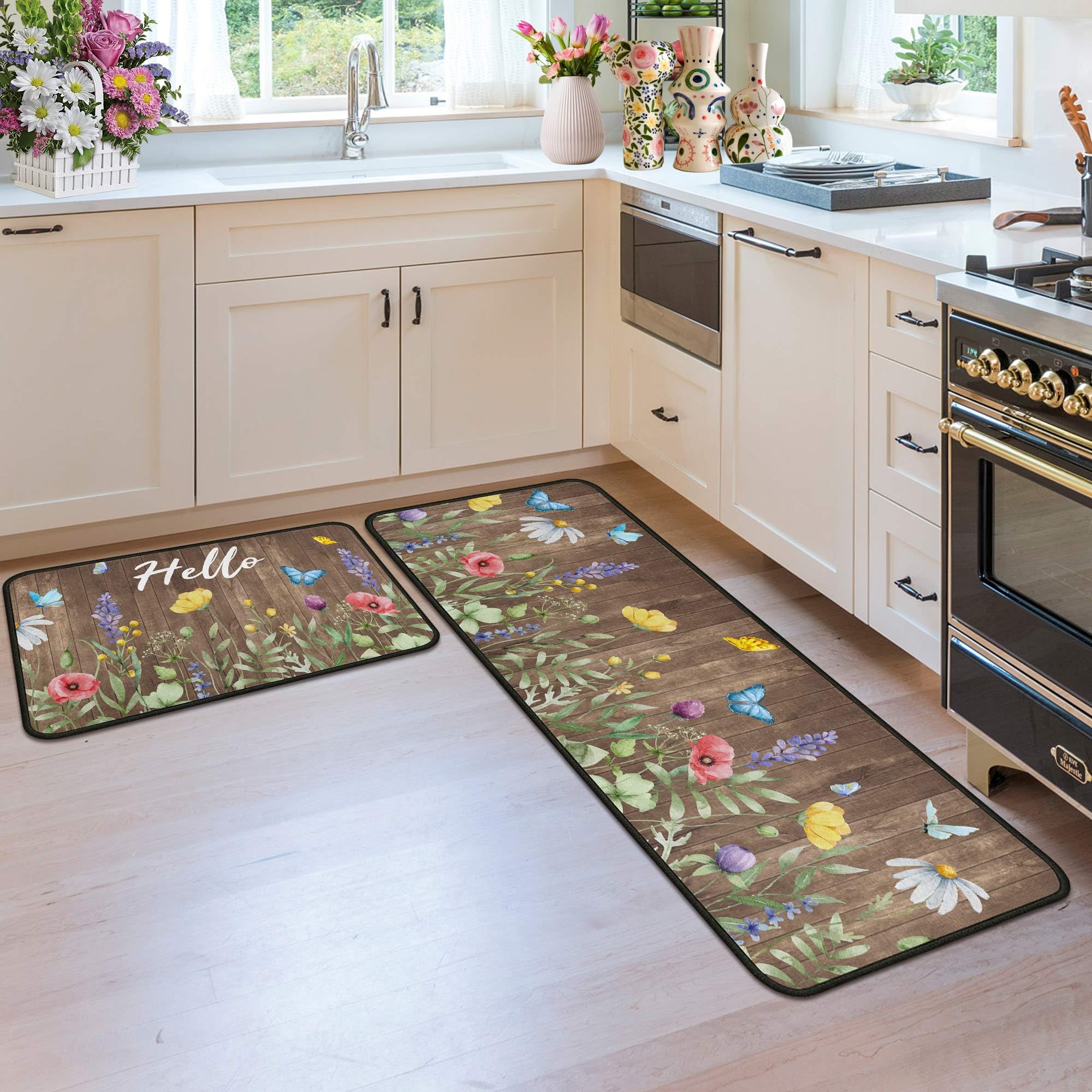 Spring Kitchen Rugs and Mats for Floor, Spring Decorations for Home, 2 Pcs Non-Slip Backing Spring Summer Mat, Spring Decor Holiday Kitchen Rug Sets with Runner 17"x47.2"+17"x30"