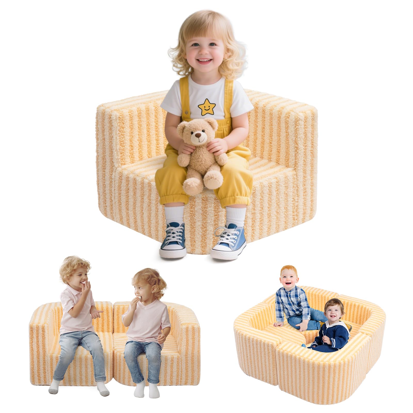 ALIMORDEN Cheese Modular Kids Couch, Kids Sofa Cuddly Reading Couch for Boys and Girls, Yellow
