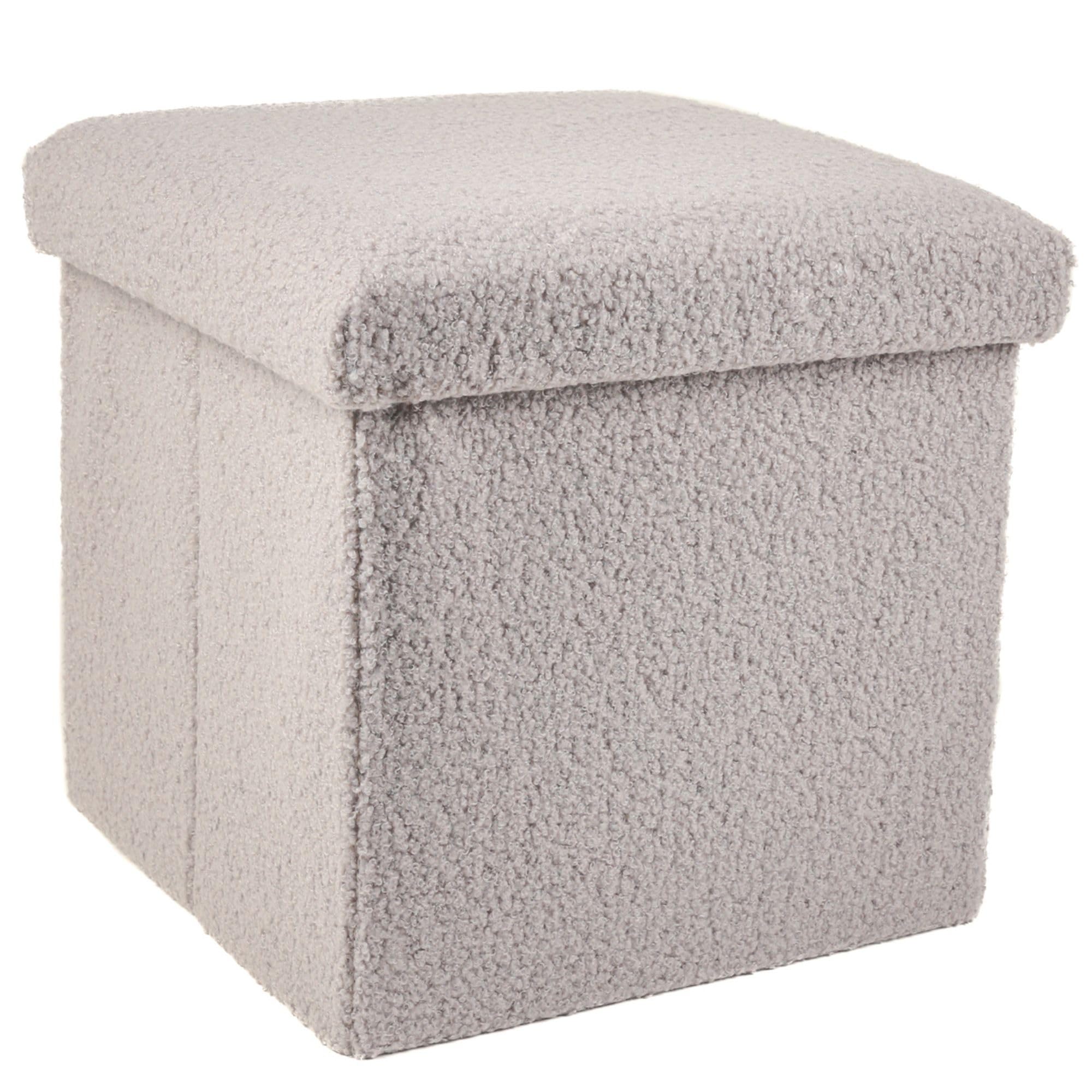 The Go-Poufs Knock-Down Storage Ottoman offers an immediate solution for organized living without the hassle of complex assembly. Arriving flat, the innovative knock-down design allows the 12-inch cube to pop into shape in seconds without the need for tools, screws, or hardware. This reinforced piece is engineered for daily versatility, functioning as a comfortable footrest, a stable side table for tablets, or a sturdy extra seat for guests. The discreet interior compartment serves as a powerful clutter-buster, perfectly sized to stow away gaming controllers, remotes, magazines, or small toys. Wrapped in a premium grey teddy boucle fabric, it provides a soft, trendy texture that elevates any modern decor. To ensure the longevity of the frame and the luxe material, please note that it is strictly spot-clean only and not suitable for machine washing. Designed with small spaces in mind, this lightweight ottoman is ideal for apartments, dorms, or RVs. Its collapsible frame allows it to fold completely flat when not in use, making it easy to store under a bed or in a closet. This combination of style and portability ensures your home remains tidy and sophisticated.