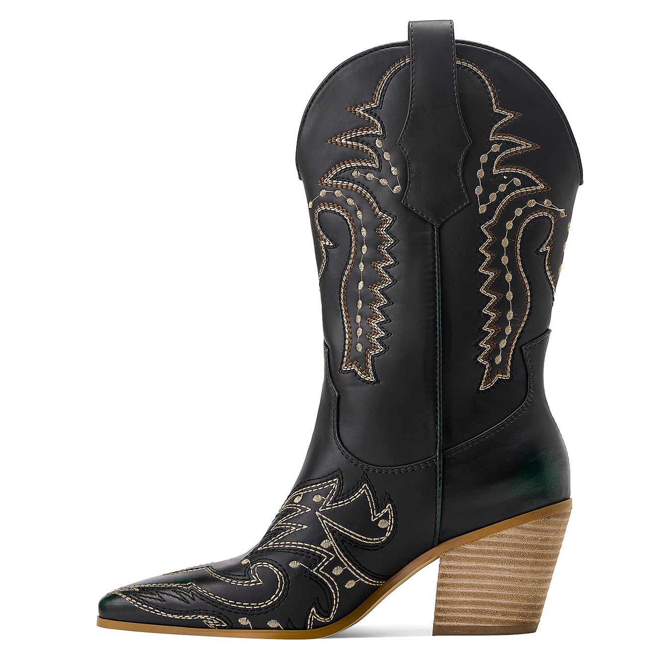 Voaboasy Women's Mid Calf Boots Stylish Cowgirl Boots for Women Knee High Walking Shoes