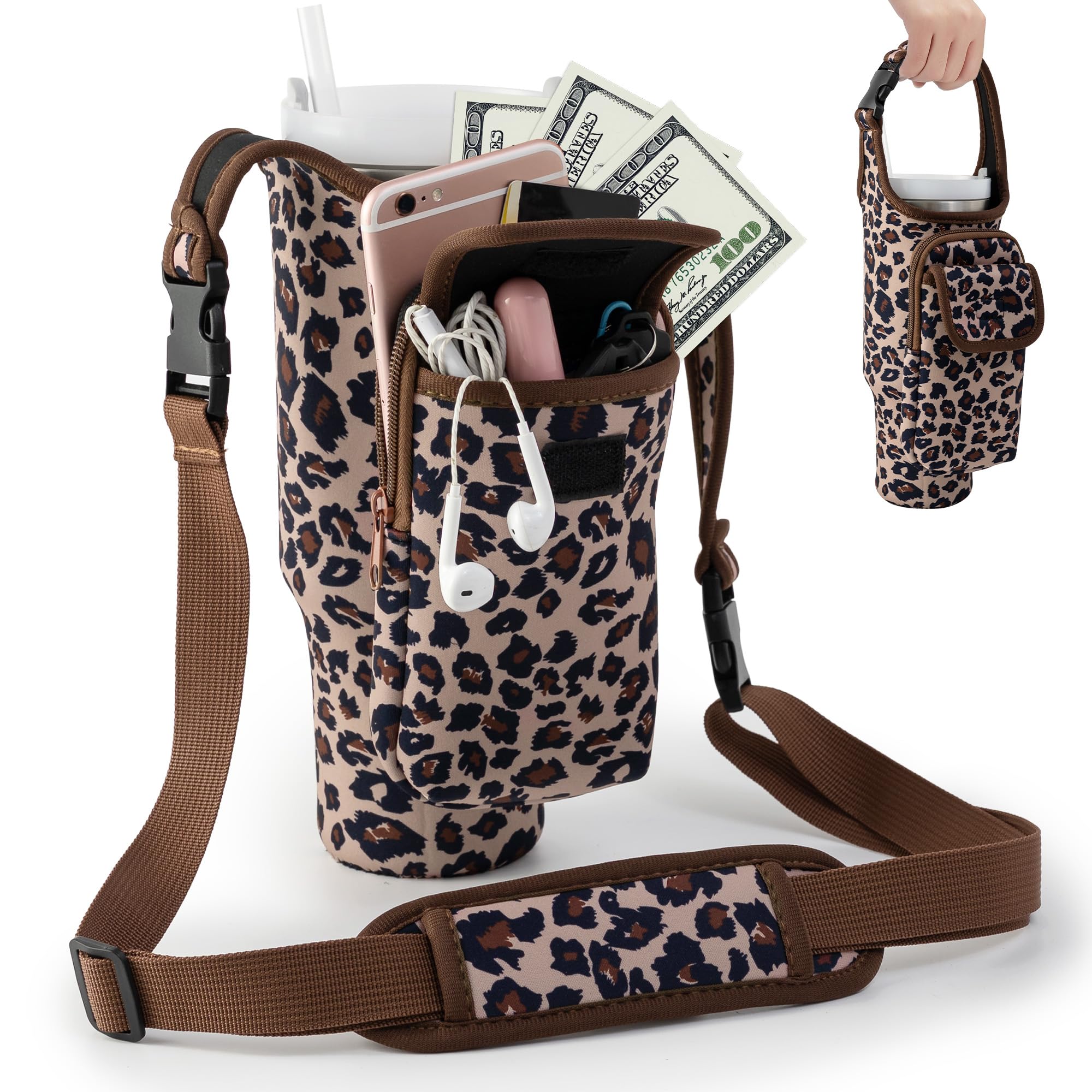 Bufilea Carrier Bag with Phone Holder Pockets for Stanley 40/30oz Tumbler with Handle, Insulated Neoprene Crossbody Bag Cup Holder w/Shoulder & Handheld Straps Fits Stanley Cup Accessories