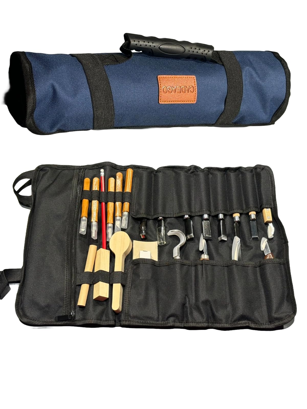 Unleash your creativity with the CADEAGO Wood Carving Kit, the ultimate companion for both beginners and seasoned experts. Dive into the world of wood carving with our comprehensive wood carving tool set, thoughtfully curated to bring your artistic visions to life. Our wood whittling kit for beginners is designed with a friendly approach to ensure a smooth and enjoyable carving experience. The CADEAGO wood carving kit features a complete set of tools, including: Five carving knives: Four featuring durable black walnut handles and one with a beech wood handle. Seven large chisels with comfortable beech wood handles. Five small chisels for intricate detailing and fine work. Two basswood blocks (dimensions: 2 cm x 2 cm x 10 cm and 1.5 cm Φ x 12 cm). One basswood spoon. One pencil for sketching designs and markings. One leather strop for maintaining and sharpening blades. One polishing compound. One rasp for shaping and refining wood surfaces. One pair of gloves for added safety and protection. The CADEAGO kit comes with blocks of wood in different sizes, perfect for exploring a range of projects from spoon carving to detailed wood sculptures. The soft wood included is easy to carve, allowing for smooth and precise cuts, ideal for beginners who are just starting their woodcarving journey. Plus, the kit is easy to transport, making it perfect for carving on the go or in the comfort of your home. Whether you're a hobbyist or a professional, this all-in-one carving set provides everything you need to create stunning works of art. Embrace the art of carving with CADEAGO and discover the joy of crafting beautiful pieces from wood with our woodcarving kits for beginners and beyond. Let your imagination run wild with a widdle kit that brings your creative ideas to life!