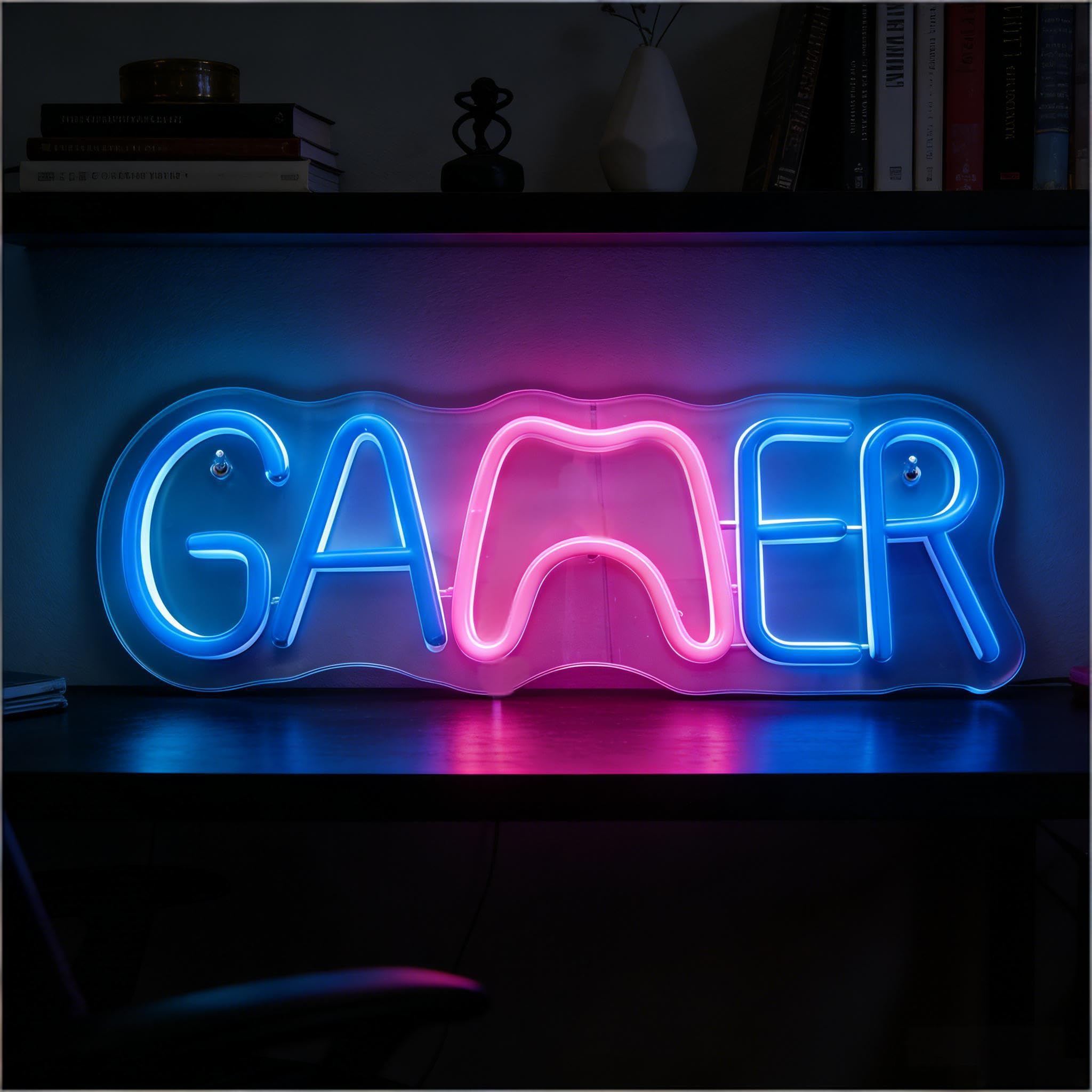 Neonawall Gamer Neon Sign, USB Gaming Lights for Wall Decor, Dimmable LED Neon Light Gaming Room Decor, Gifts for Gamers 14.2 x 5.1 inch