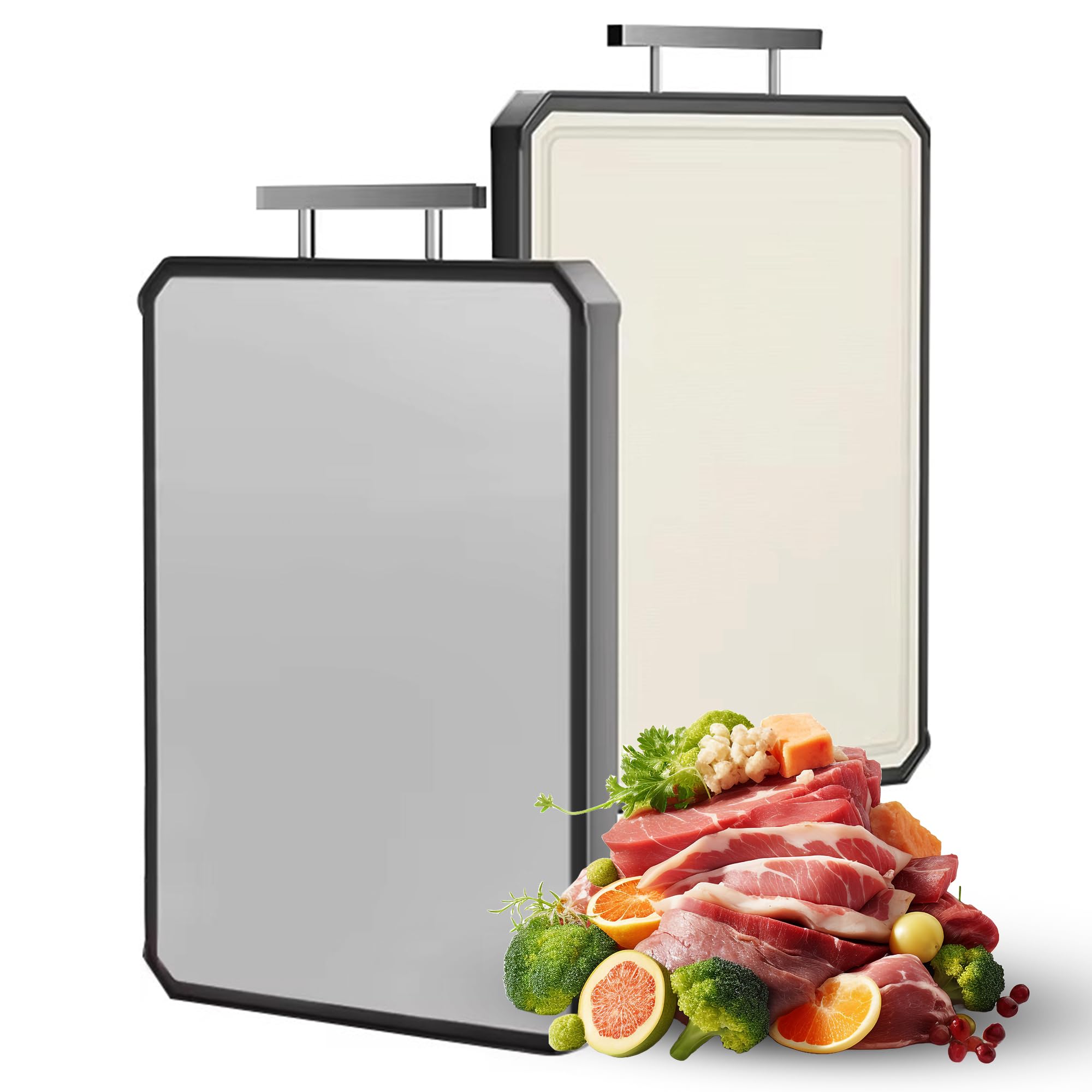 It This double-sided cutting board provides a reliable cutting board that's easy to maintain. This type of cutting board is famous for having excellent stopping to rust and corrosion since it is composed of stainless steel. It’s made 100% food grade stainless steel. Item Name: Double sided cutting board. Material: 304 Stainless steels + PP Color: Green and grey Features: dishwasher safer, reusable, heat resistant, durable Size Details: There are One Standard sizes available. Product: . Diameter: Length- 41cm X Width-27cm x Height: .1cm Weight:1.2Kg Packaging: Diameter: Length- 41cm X Width-28cm x Height: .2cm Weight:1.3Kg Packaging Material: Bubble Bag Temperature: -40C to 230C/-104F to 446F Package Includes: 1 PCS Double side cutting board Consider features like food preparation suitability when choosing a safe cutting board for the kitchen. We invite you to purchase our Double side cutting Cutting boards. Thanks for spending time staying & visit here.