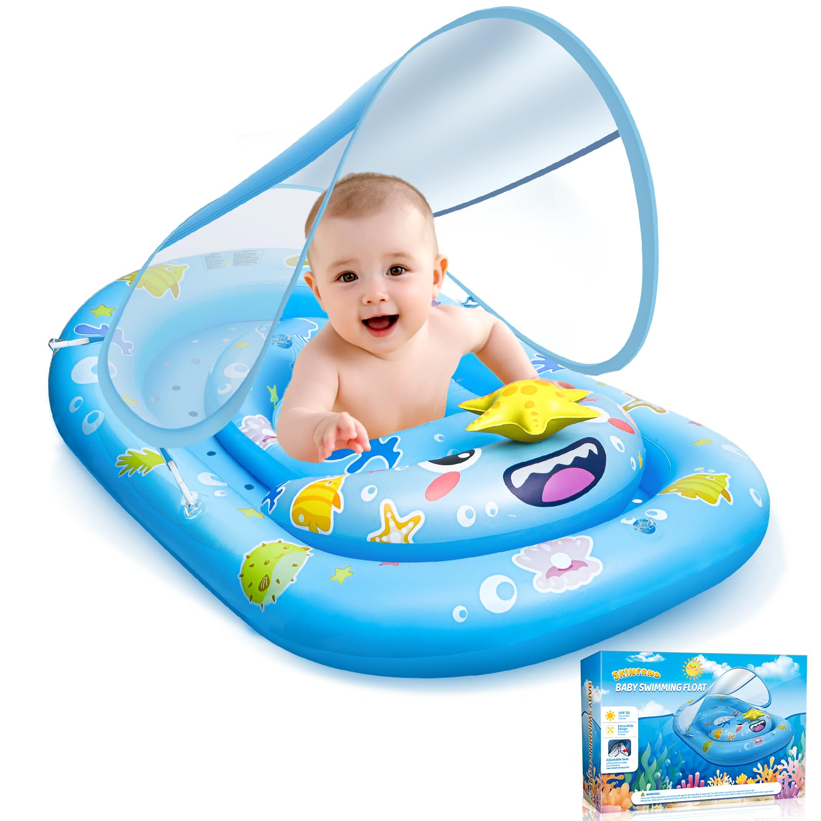 Baby Pool Buoy with Canopy - 2025 New Inflatable Baby Swim Buoy with UPF50+ Solar Protection