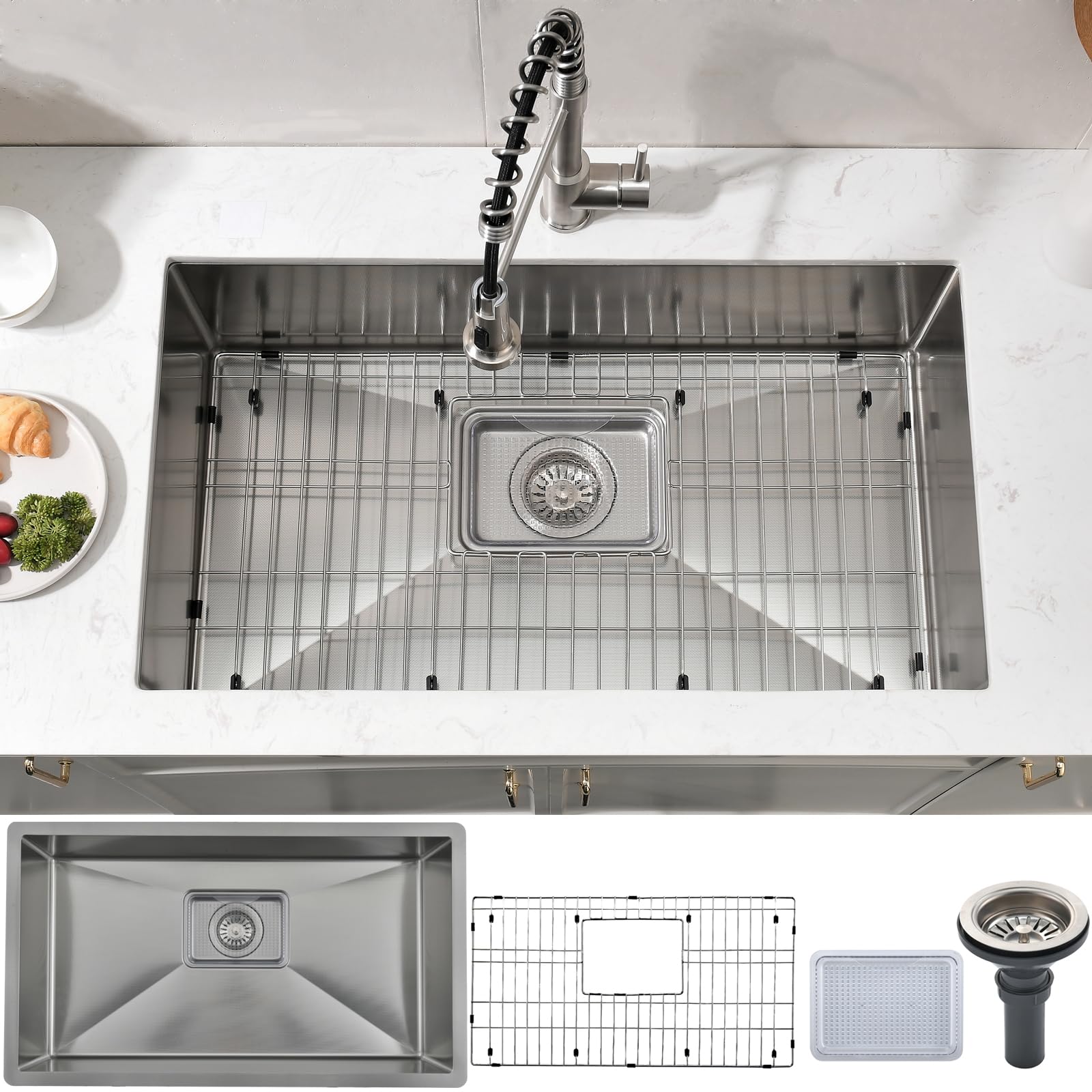 Great deal on 30x19 Undermount Kitchen Sink, 16 Gauge Stainless Steel Single Bowl Sink, Deep Workstation Kitchen Sink with Nano-Coating, Modern Farmhouse Undercounter Sink with Accessories (Stainless, 30 * 19in) at Amazon.