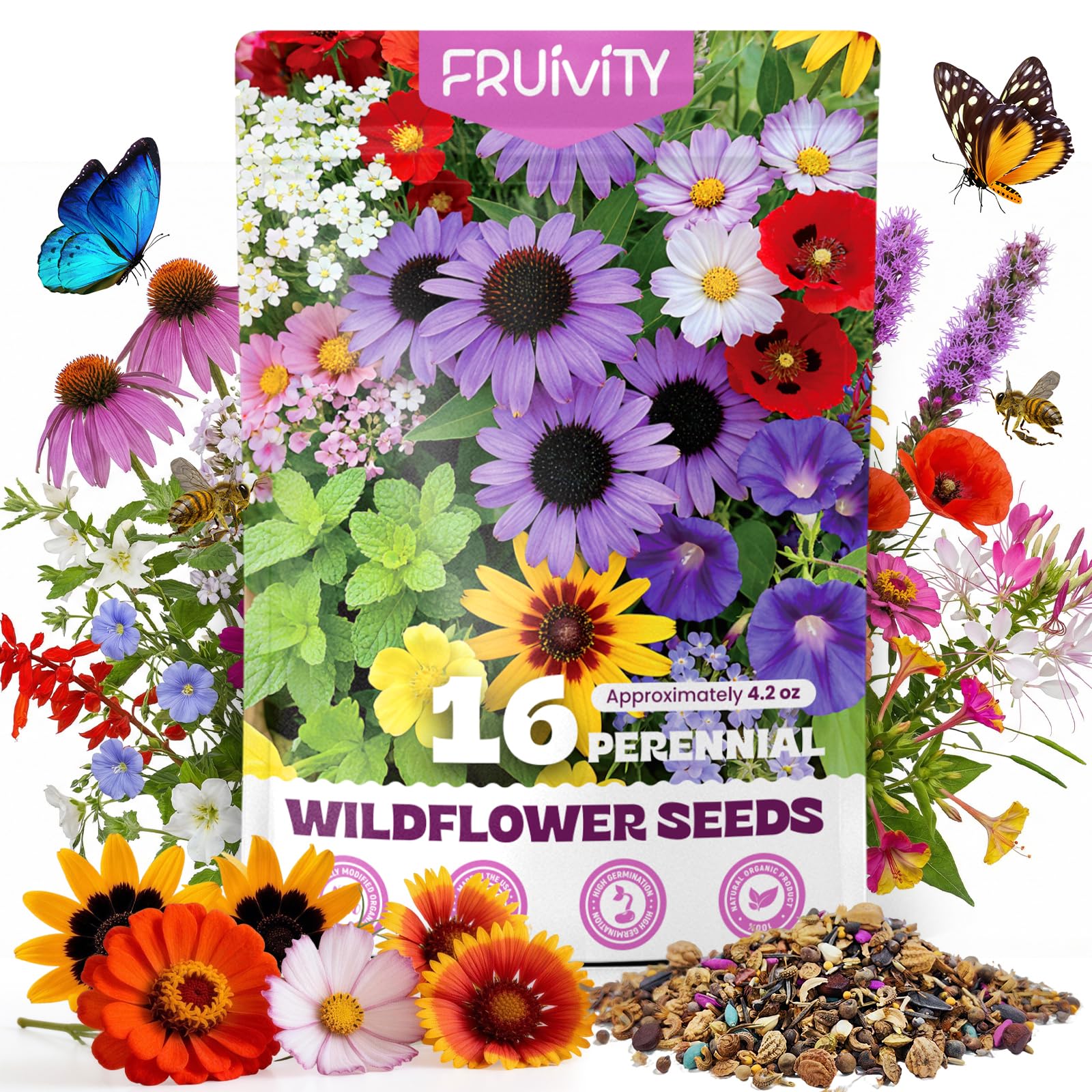200,000+ Wildflower Seeds Bulk (4oz) – 16 Varieties Perennial & Annual Mix, Non-GMO Heirloom Seeds, Attract Bees, Butterflies & Hummingbirds, High Germination for Indoor/Outdoor Pollinator Garden