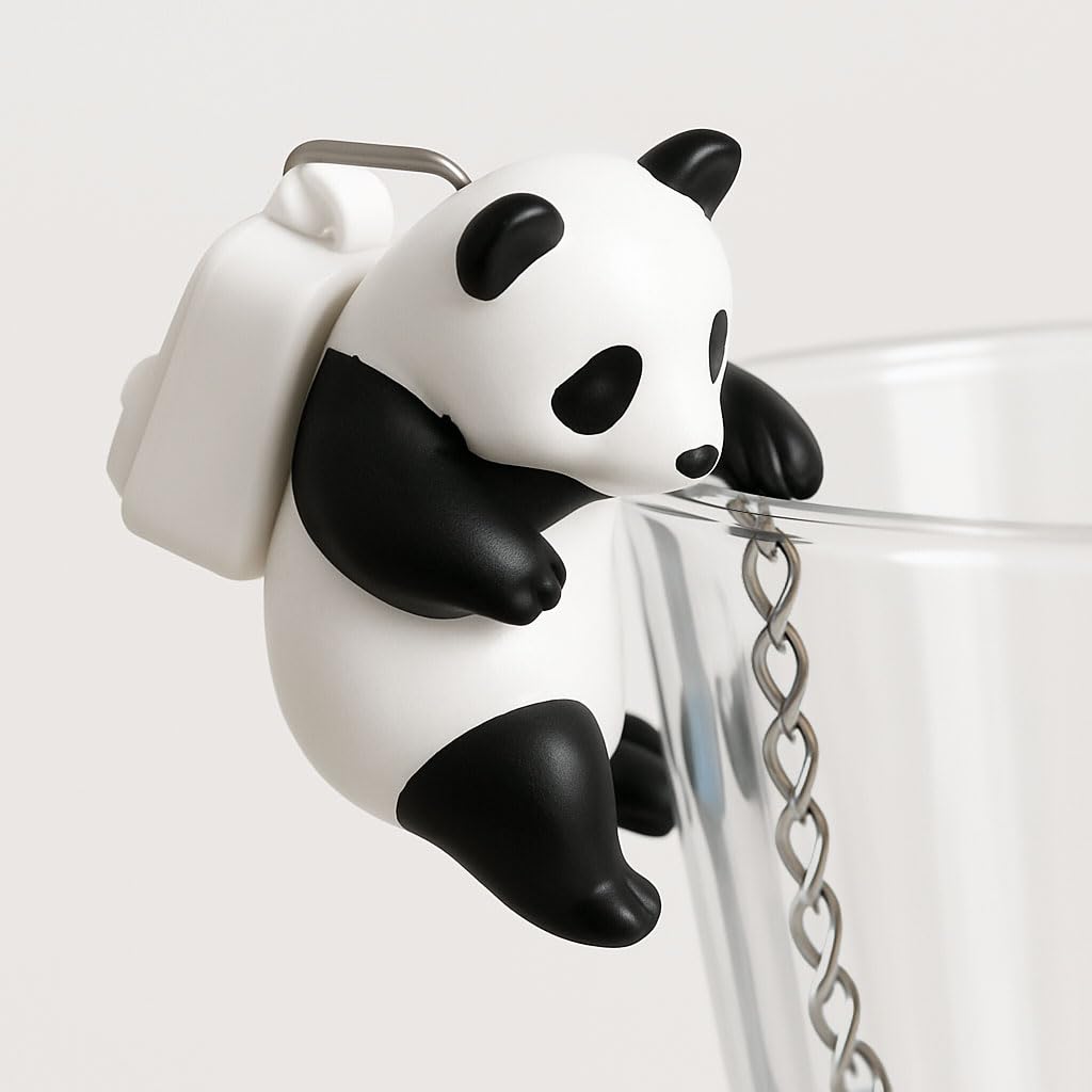 Lesnorry Cute Tea Infuser – Backpack Panda Climbing Mug Hook, Anti-Slip Grip Paw, 50% Denser Fine Mesh 304 Stainless Steel Tea Infuser for Loose Leaf Tea, Upgraded Lock-Fit, Less-Mess Steeper