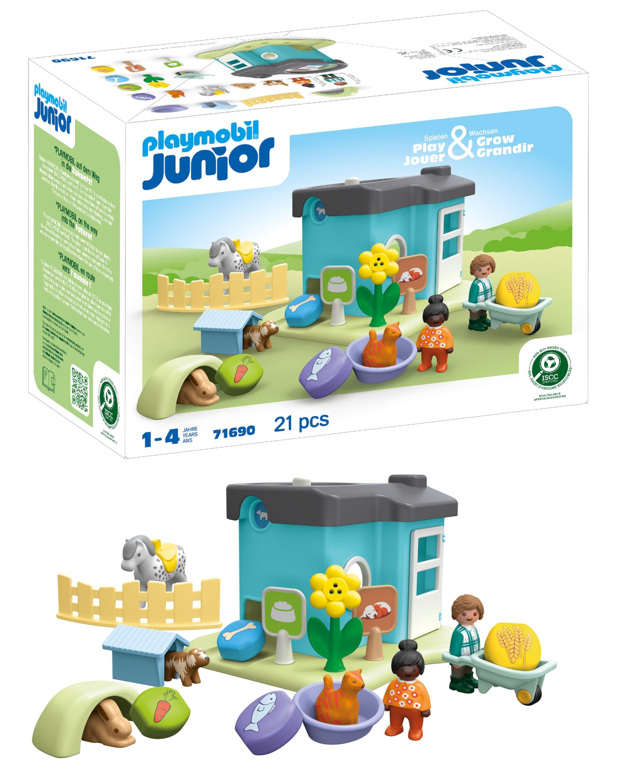 It's market day! Which vendor has the crispiest vegetables and the sweetest fruits? With this colorful set, your child can gain their first shopping experiences. Who delivers the groceries and how are they weighed? With the Organic Market Stall, your child can playfully recreate the shopping process and, in the process, develop a sense for shapes, colors, and quantities.Does your child enjoy shopping? Then this set is perfect. At the Organic Market Stand, there's plenty for little market visitors to explore. The forklift delivers fruits and vegetables. Quickly, the crates are unloaded, and the sales begin. How many bananas are printed on the shape block? Who can turn the scale to the correct number? And how many fruits fit in the shopping cart? Who can sort all the fruits and vegetables into the right crate? After the successful shopping trip, there's still one question left: Which fruit or vegetable tastes best? PLAYMOBIL JUNIOR - designed for our youngest PLAYMOBIL fans! Perfect for small hands and early toddler-friendly discoveries. With many exciting features such as stacking, puzzling, or sorting fun. Let your child aged 1-4 years take their first steps into the big PLAYMOBIL world with PLAYMOBIL JUNIOR! PLAYMOBIL JUNIOR keeps your child’s safety in mind: PLAYMOBIL JUNIOR is manufactured in the EU, BPA-free and designed without small parts that could pose a risk of being swallowed. All PLAYMOBIL JUNIOR playsets are also made from over 90% plant-based plastics, which can be traced back to materials left over from food or paper production using the mass balance approach used in the circular economy and in accordance with the ISCC-208 standard. These plastics are robust and easy to clean. For our PLAYMOBIL JUNIOR packaging, we use at least 90% recycled cardboard and 100% recycled paper and, where possible, avoid plastic. PLAYMOBIL JUNIOR - discover the world in a toddler-friendly way!