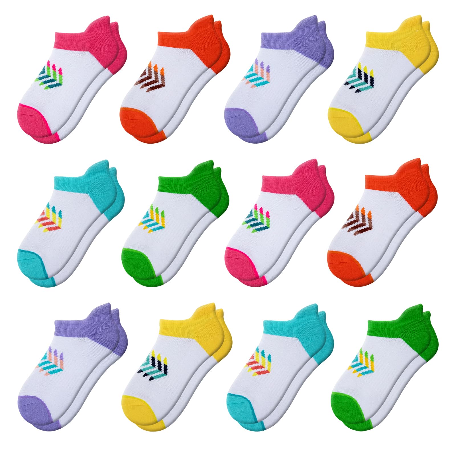 Comfoex 12 Pairs Girls Socks For Kids 6-8 4-6 8-10 Years Old Ankle Athletic Socks Short Cotton Socks With Cushioned Sole