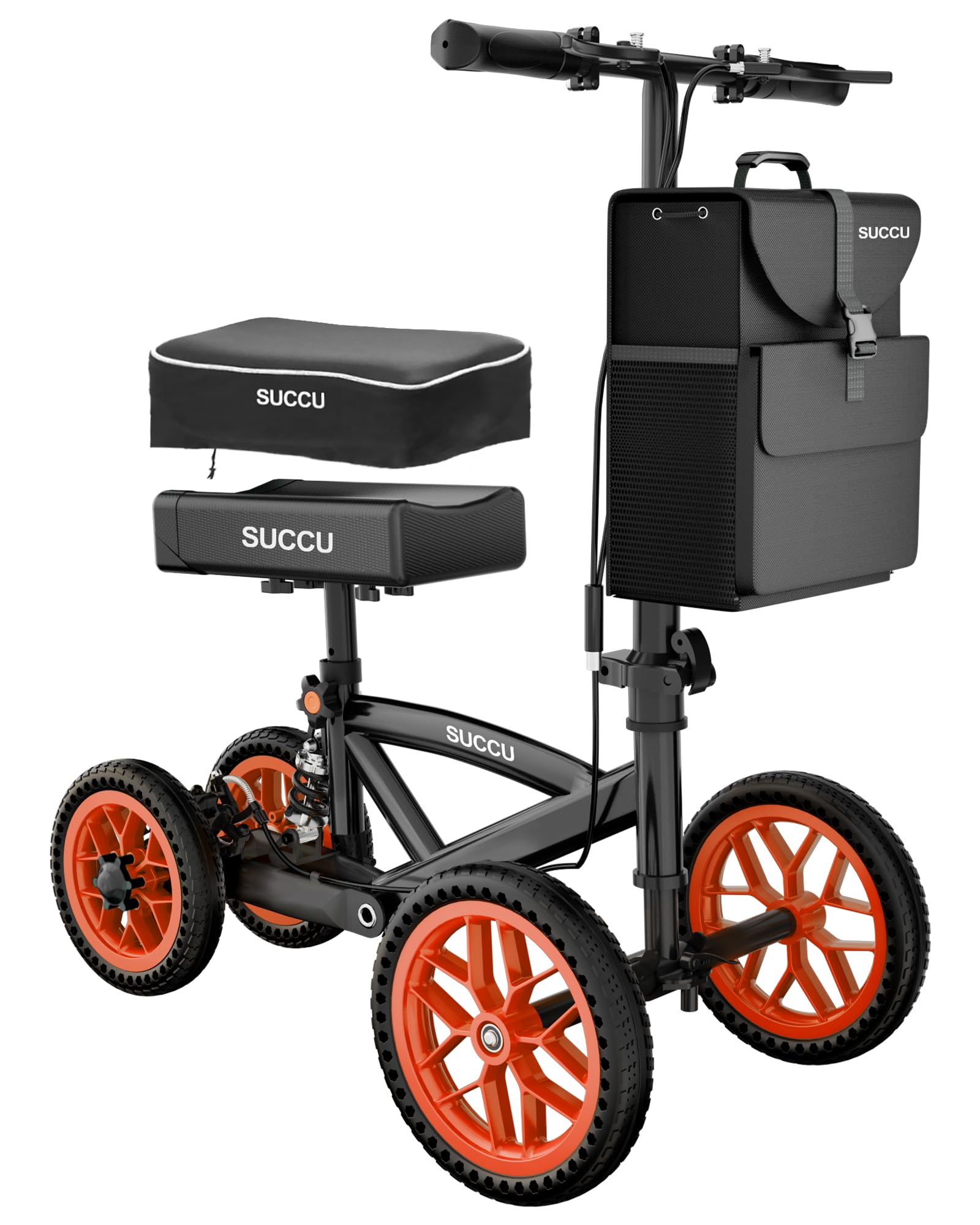SUCCU Knee Scooter for Adults for Foot Surgery, 11in Front Wheel Heavy Duty Knee Walker for Broken Foot, 350lbs Capacity Foldable Scooter Crutch Alternative with Disc Brake, Black