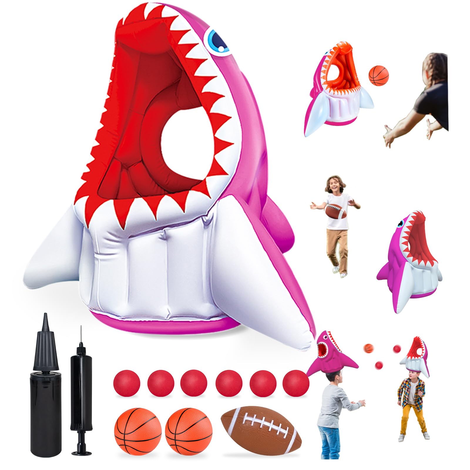 Inflatable Shark Pool Toy - 3-in-1 Water Sports Game for Endless Summer Fun! 3-IN-1 POOL TOYS PARTY This inflatable shark isn't just a pool float - it's your ultimate water game station! Enjoy basketball, football (soccer), and hoop toss all in one rugged design. Perfect for: Competitive kids' tournaments Adult pool party challenges Family beach day entertainment Built-in drink holder keeps beverages chilled during play Maximum stability Reinforced PVC construction resists punctures SUMMER ESSENTIAL Turn any gathering into a splash fest! Ideal for: Backyard pool parties Lake vacations Beach weekends Summer camp activities PERFECT GIFT FOR WATER LOVERS Includes: Inflatable shark game*1Pcs Basketball*2Pcs Football*2Pcs Inflatable Pump*2Pcs SATISFACTION GUARANTEE We stand behind our products! If you're not completely thrilled with your shark pool toy, contact us - no questions asked! make this your most memorable summer yet! Water games start the moment this shark pool games hits your pool!