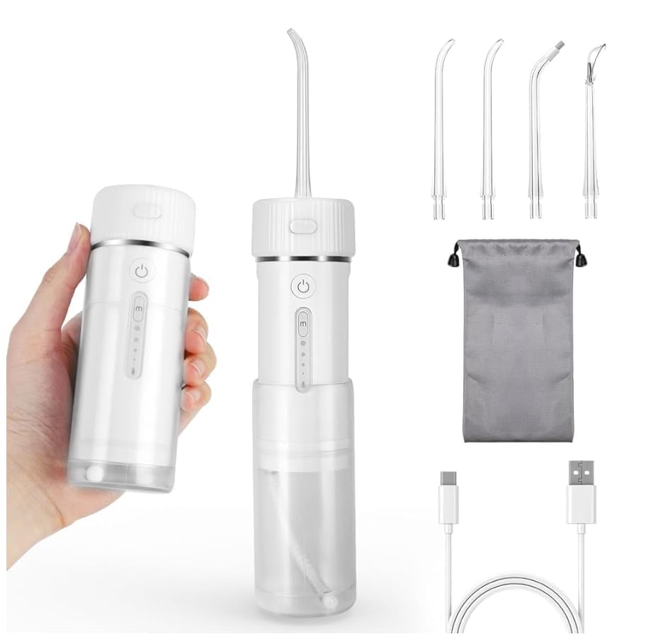 FERRISA Portable Cordless Water Flosser Rechargeable, Detachable Water Tank, Water Dental Flosser with 4 Refill Heads, 4 Modes & Ipx7 Waterproof, Travel Water Flosser for Braces, Teeth Care