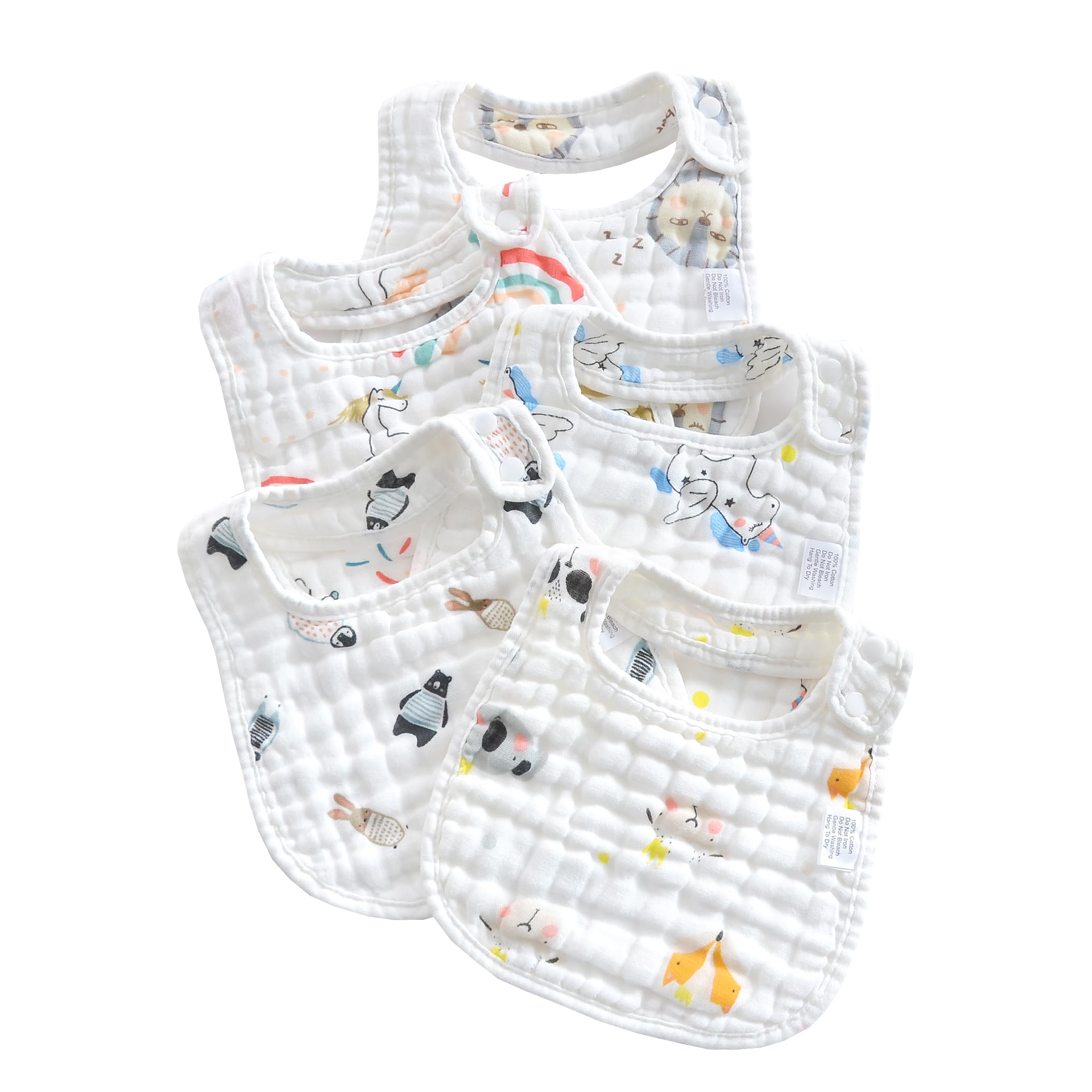 Product Description Our muslin cotton baby bibs are designed to make life easier for parents while keeping babies comfortable, dry, and stylish. Whether you are looking for drooling bibs to handle constant teething moisture, reliable feeding bibs for messy mealtimes, or soft teething bibs that stay gentle on sensitive skin, this 5‑pack delivers all‑in‑one versatility. Premium Muslin Cotton Crafted from 100% breathable muslin cotton, these bibs are naturally soft and become even gentler with every wash. The multi‑layer weave provides exceptional absorbency without irritating delicate skin—ideal for heavy droolers and babies prone to rashes. No‑Pullover Snap Design Unlike traditional pullover styles, our adjustable snap closure offers a quick, fuss‑free fit. Simply wrap the bib around baby’s neck and secure with the two‑position closure. No tugging, no pulling over the head—perfect for newborns and for keeping a sleepy baby undisturbed. The two size adjustments ensure a custom fit from 0 to 24 months, making these adjustable snap bibs a long‑lasting choice. Super Absorbent & Full Coverage Engineered for both drooling and feeding, the generous shape protects clothes from collar to chest. The absorbent muslin quickly traps spills and drool, keeping baby dry during teething, bottle feeding, or solid food adventures. Easy Care & Complete Set All bibs are machine washable and maintain their softness and vibrant colors wash after wash. The 6‑pack gives you a fresh bib for every meal, teething session, or outing—perfect for daily rotation and a must‑have for any baby registry. From newborn drooling to toddler mealtimes, this set combines thoughtful design with lasting quality. Add it to your baby registry or gift it to new parents looking for adjustable snap bibs that truly grow with baby.