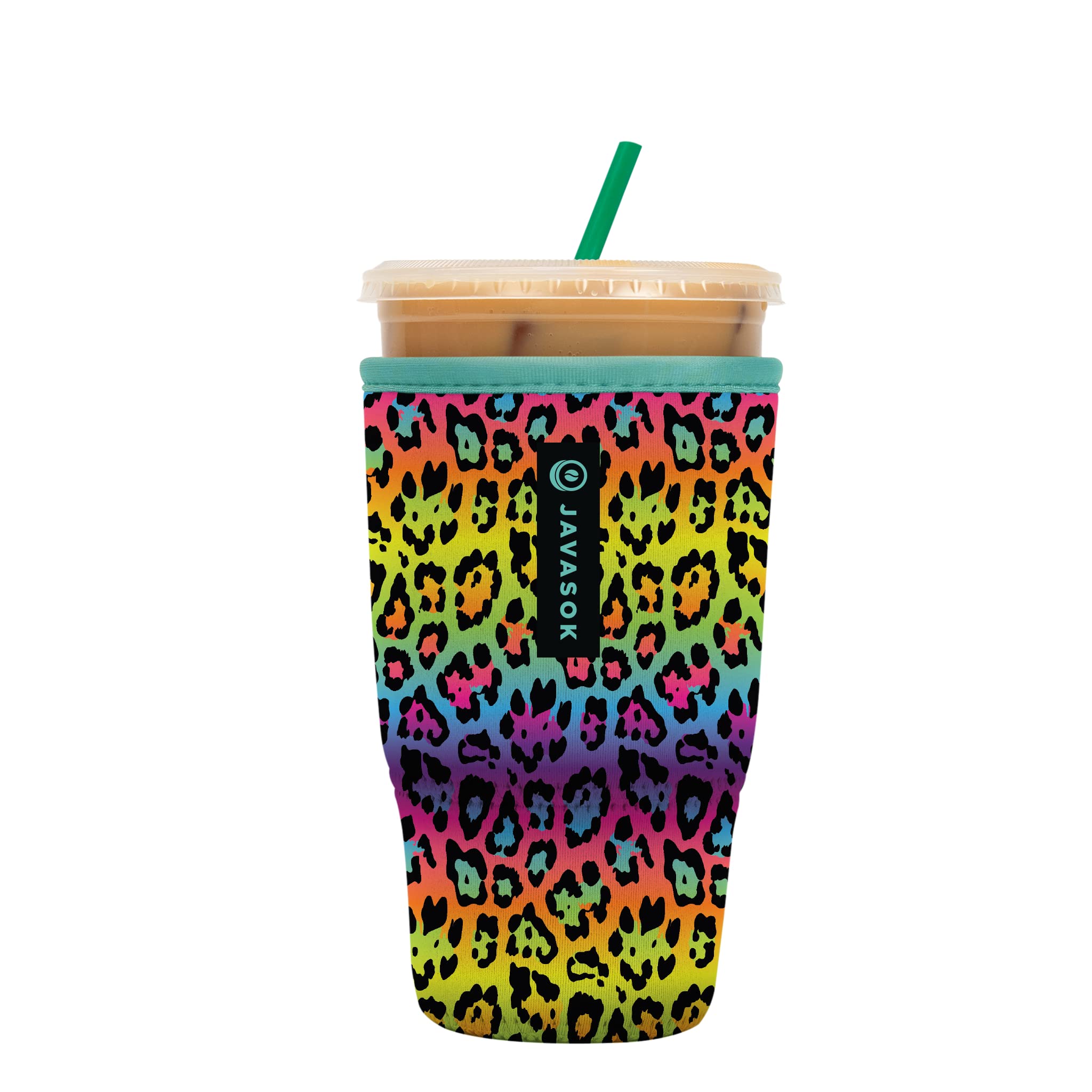 Sok It JavaSok Iced Coffee & Cold Soda Insulated Neoprene Cup Sleeve (Rainbow Leopard, Large: 30-32oz)