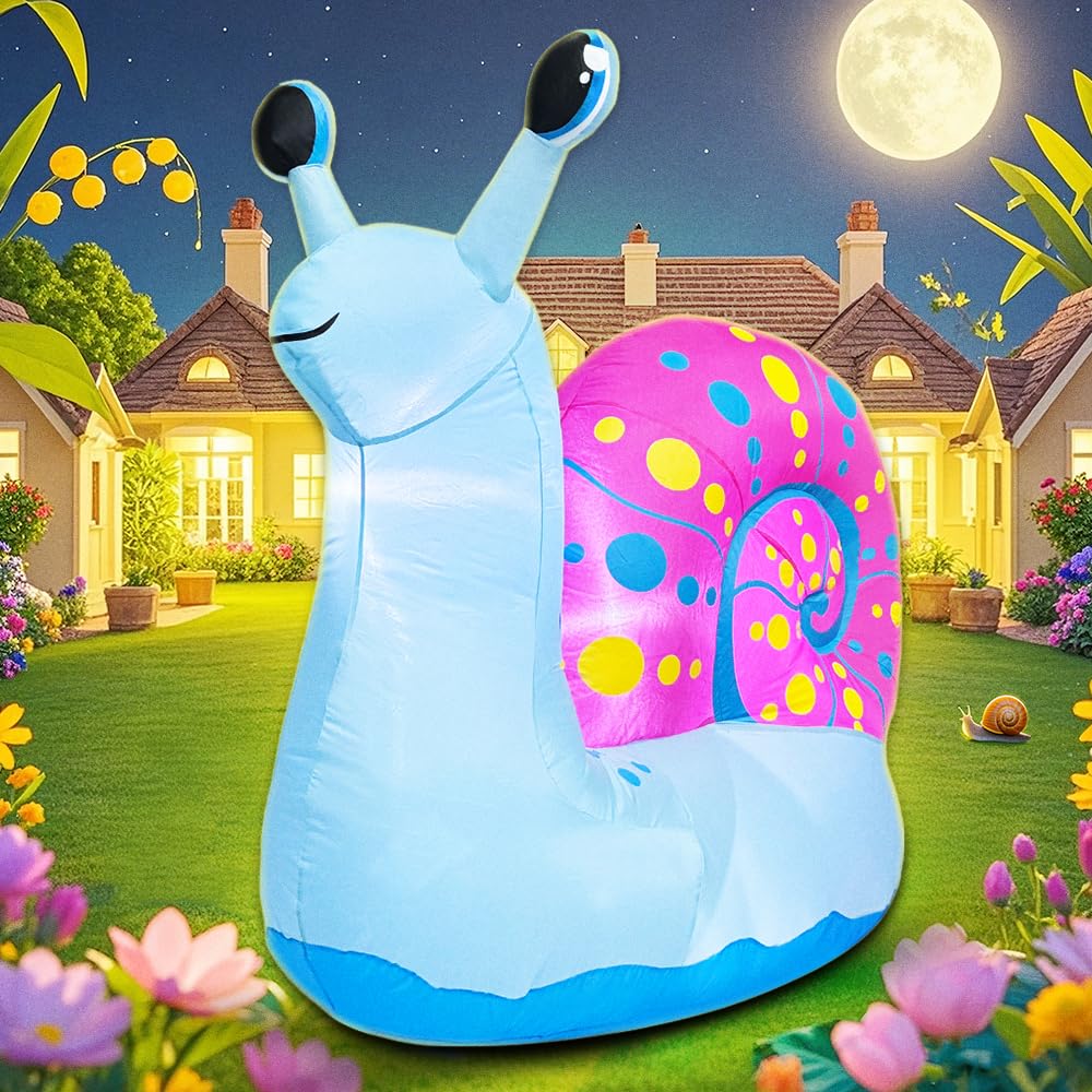 5 FT Snail Inflatable Decoration, Spring Inflatable Blow Up Animal Decorations Built LED Lights for Outdoor Yard Farm Lawn Holiday Garden Birthday Party
