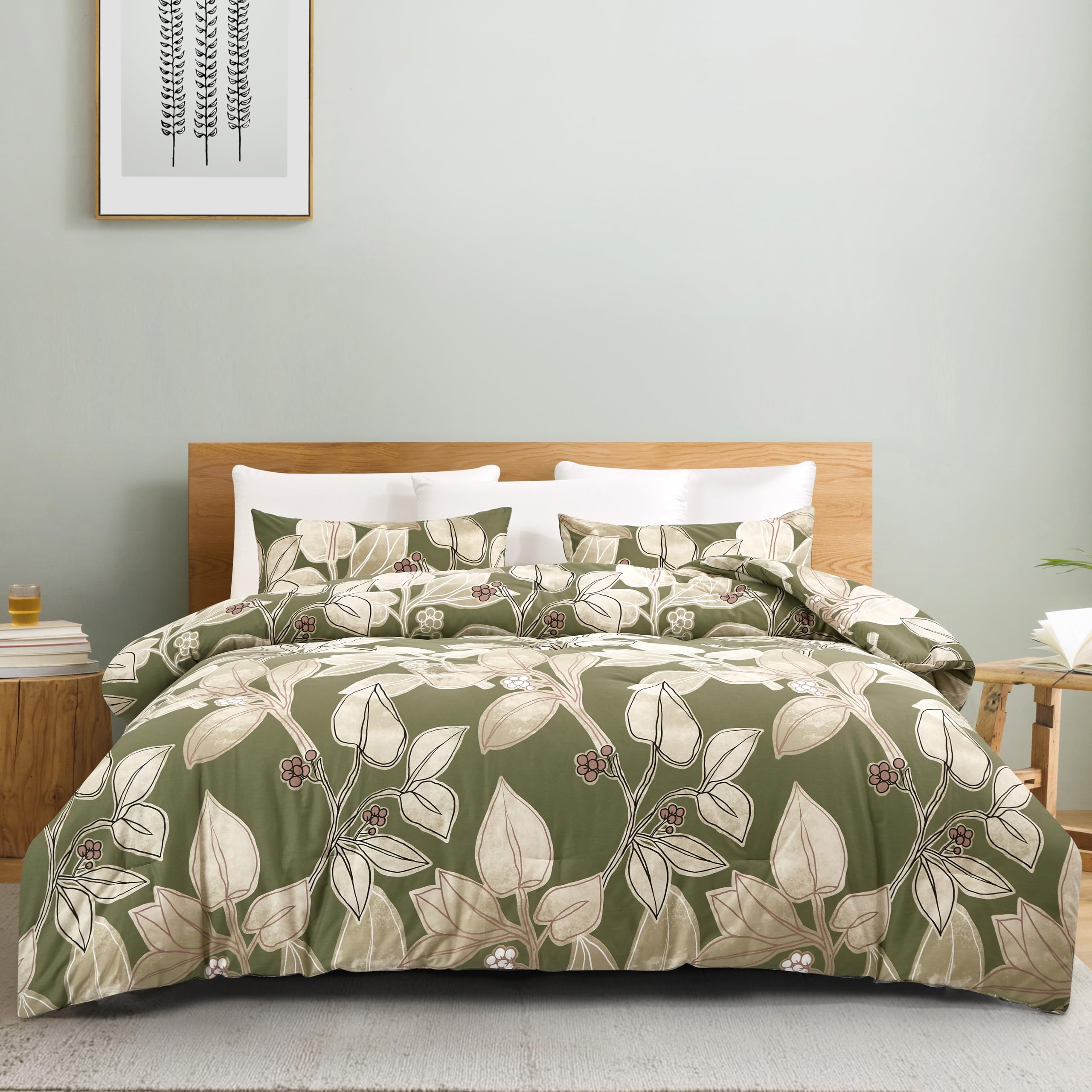 Arianaut Cotton Printed Comforter Set – Soft & Breathable Bedding Quilt Set with Microfiber Fill – Includes 1 Comforter & 2 Pillowcases – Lightweight & All-Season (Green Printed, King)
