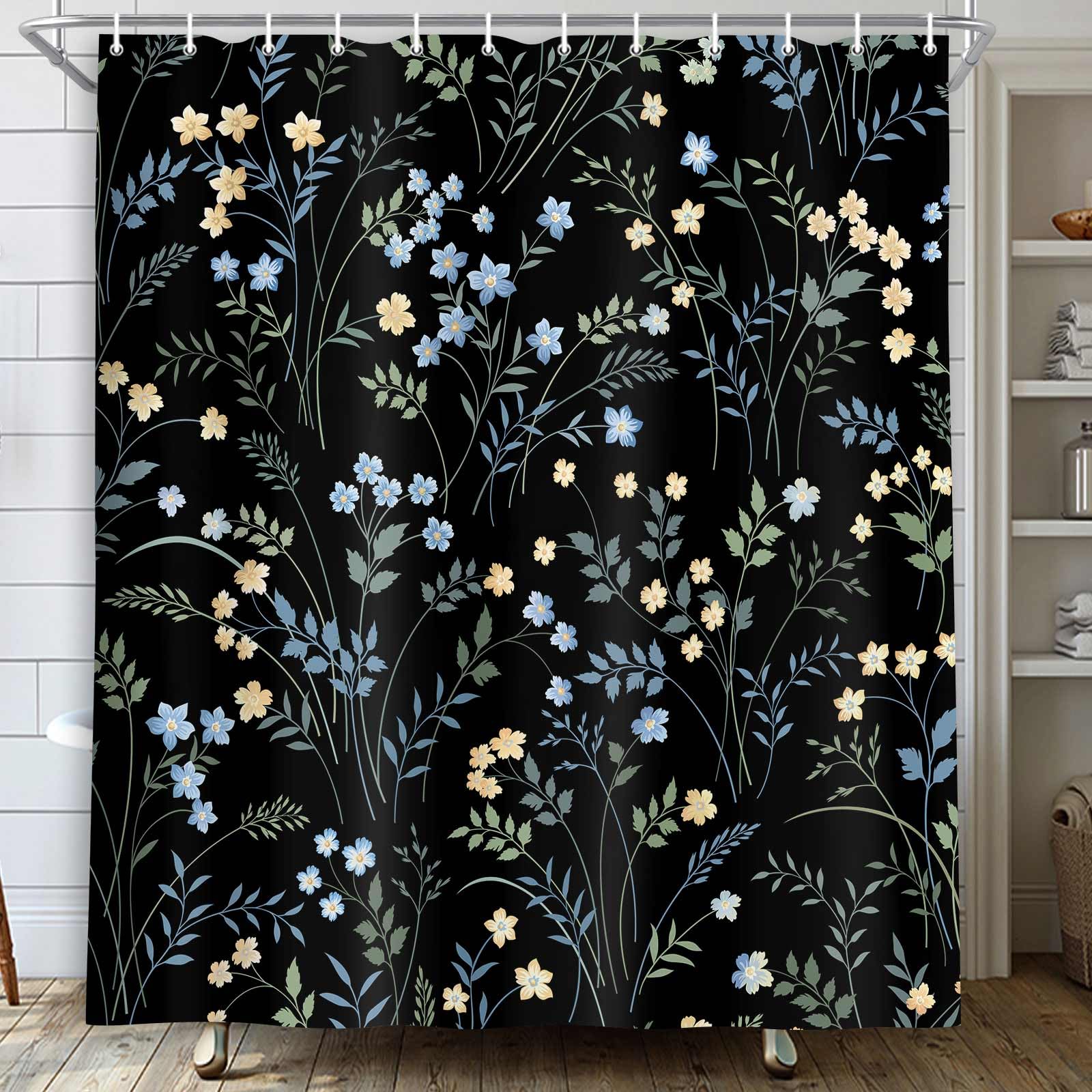 MERCHR Black Shower Curtain, Boho Floral Flower Shower Curtains for Bathroom, Modern Farmhosue Waterproof Fabric Shower Curtain Set with Hooks 72x72 Inch