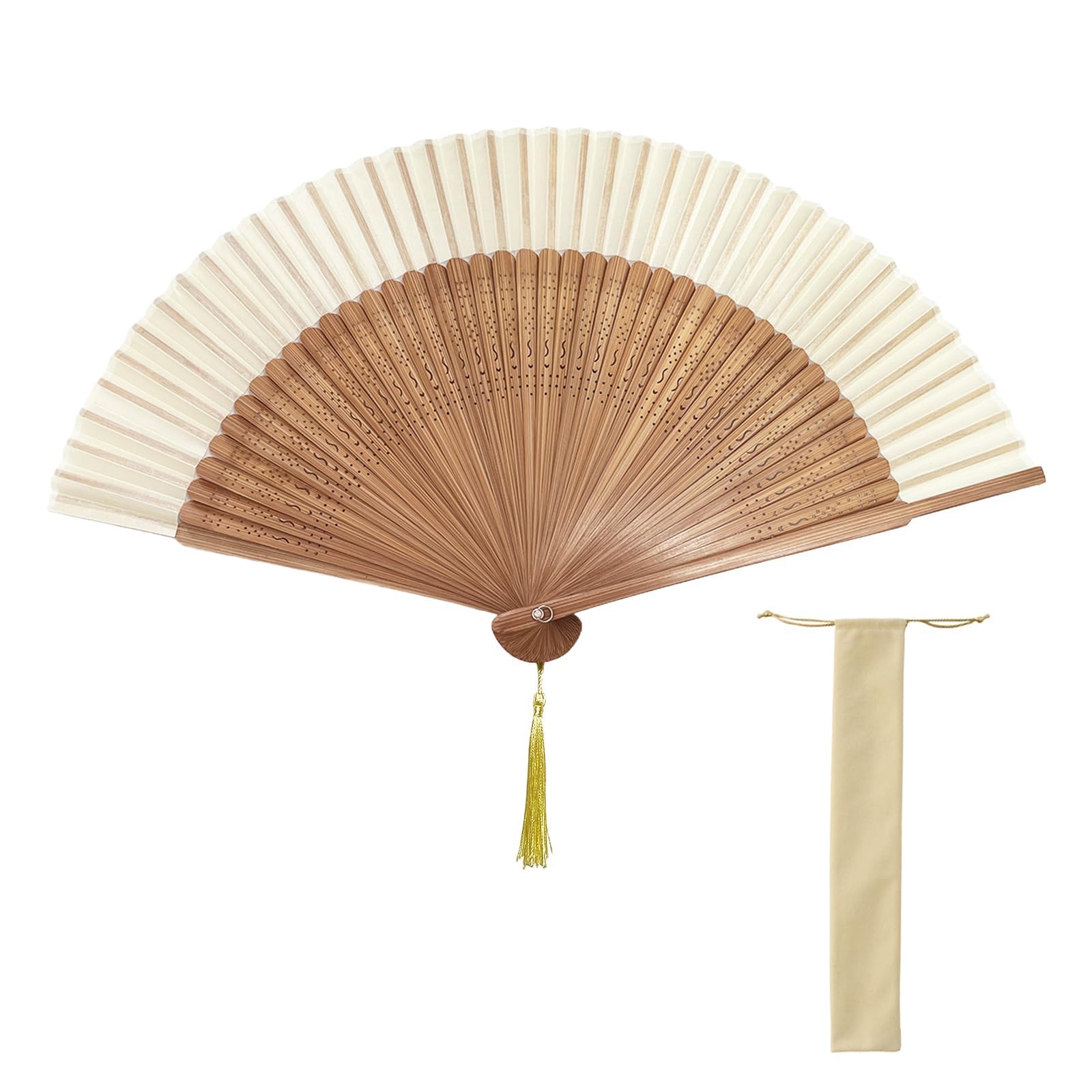 Zcblcyj Folding Fan for Women Elegant Bamboo Japanese Hand Held with Fabric Sleeve and Tassel Vintage Floral Design Handheld Fan for Gifts, Weddings, and Daily Use