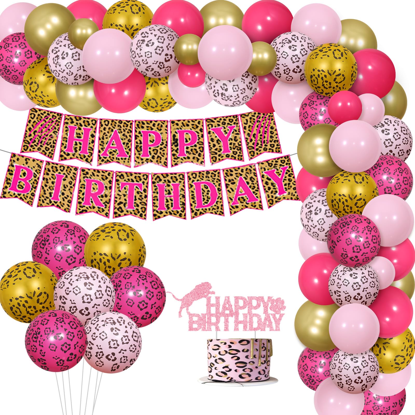 Balterever Leopard Birthday Party Decoration for Girls Pink Cheetah Birthday Decoration with Cheetah Happy Birthday Banner Cake Topper Cheetah Jungle Safari Theme Party Decor for Girl Bday Party
