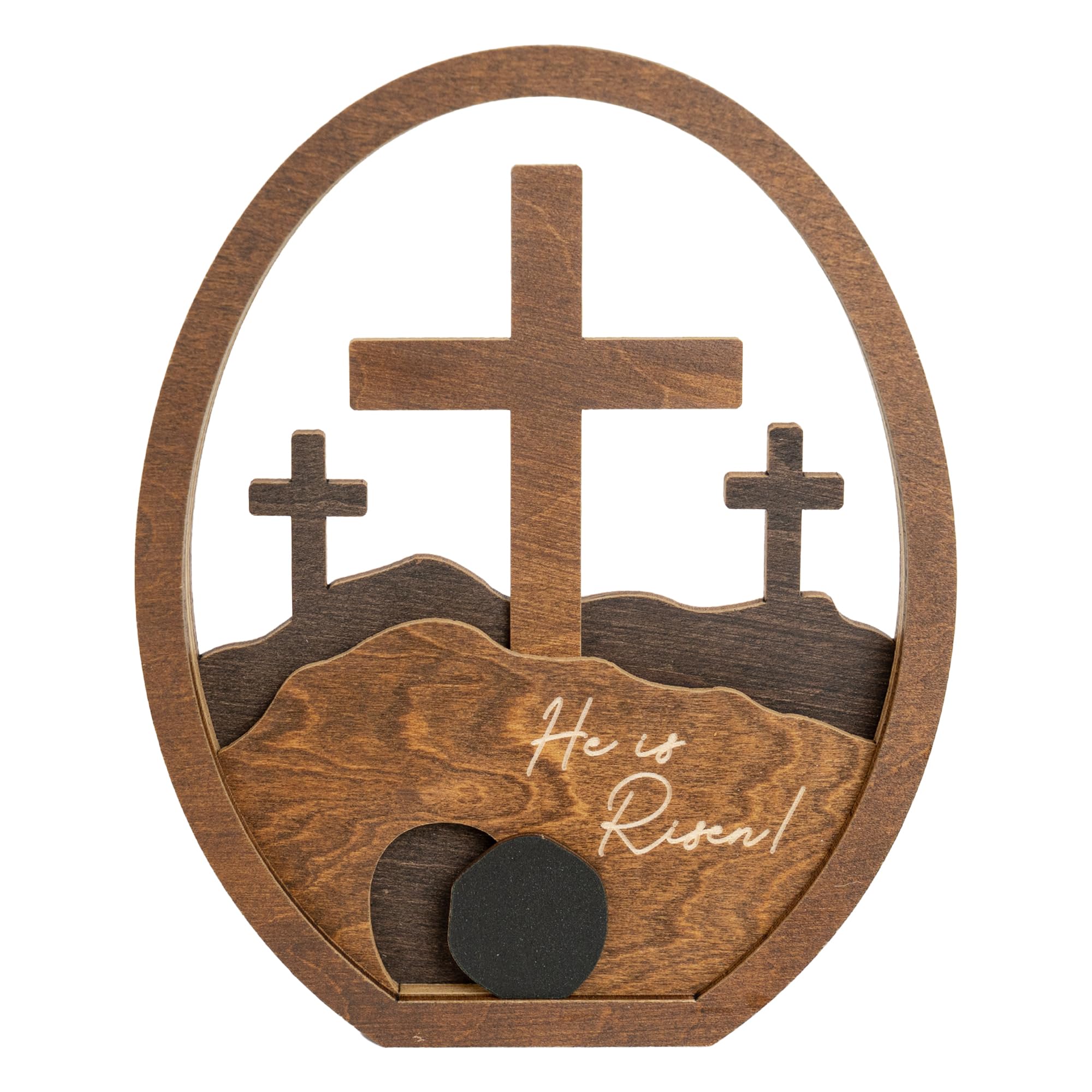 He is Risen Gifts for Adults, Easter Decor Resurrection Scene Empty Tomb, Christian Table Decorations Indoor, Catholic Cross Jesus Religious Easter Gifts Decor (Walnut Wood)