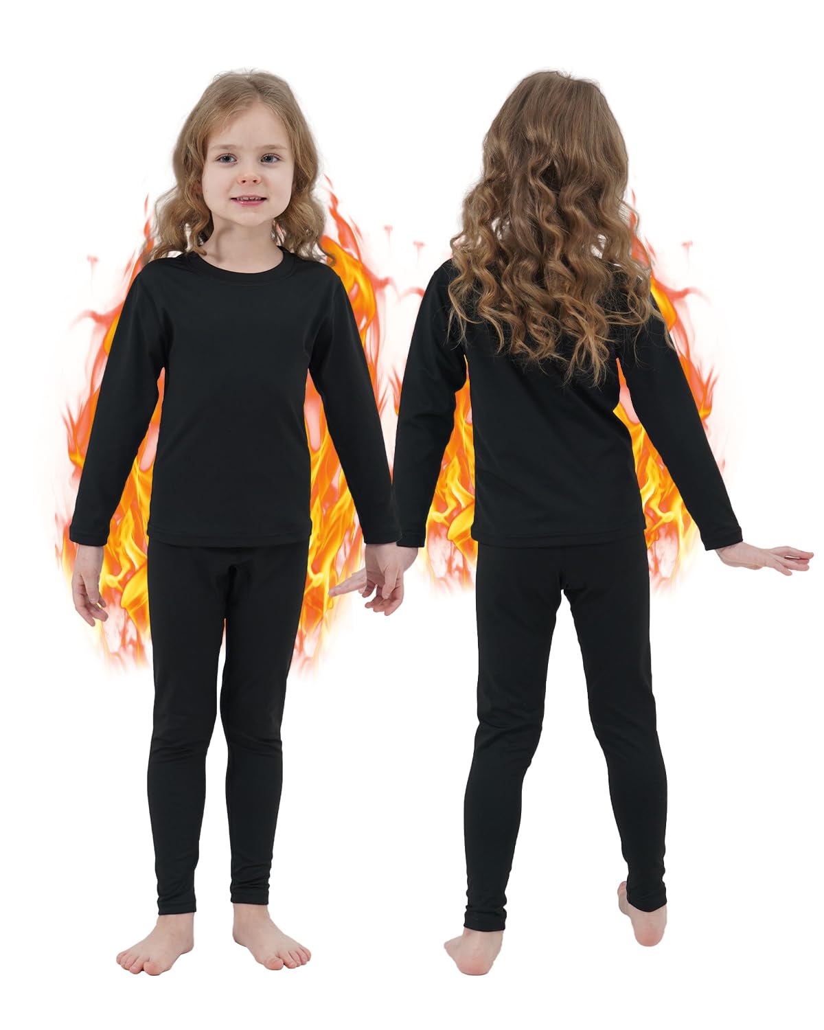 Made of 92% ultra-soft polyester + 8% spandex blend skin-touch fabric, these girls thermal underwear set ultra soft and moisture wicking. The latest 4-way stretchy material of long johns for girls provides a breathable and comfortable fit. Double base layer knit long johns Warmth Fleece lined moisture wicking Shrinkage controlled for lasting size and shape Full cut comfy fit, Elastic cuffs and waistband
