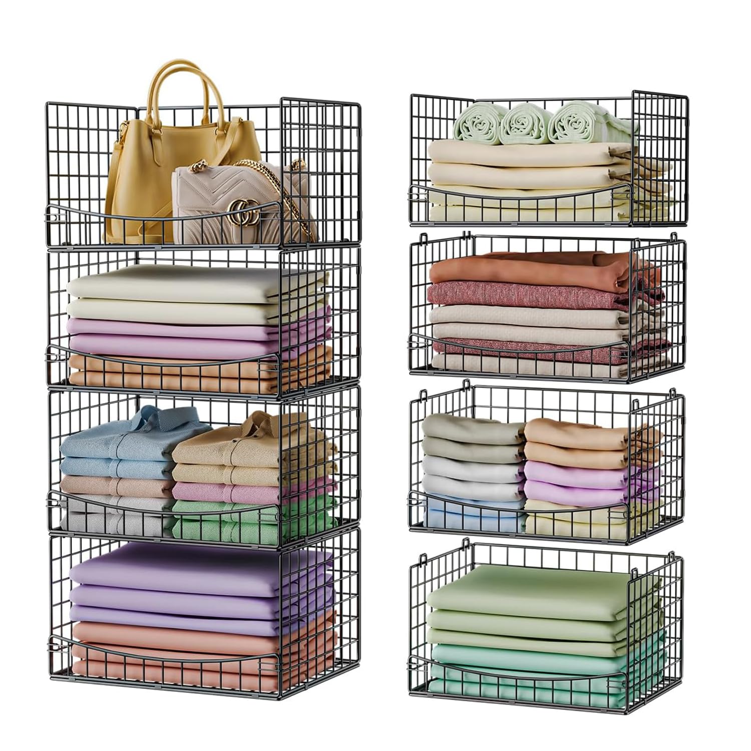 JKsmart 4-Tier Stackable Closet Organizers and Storage Shelves, Extend Clothing Closet Shelf Bins for Jeans Pants Sweaters - Wardrobe Cupboard Clothes Organizer System-Wider Mouth Design