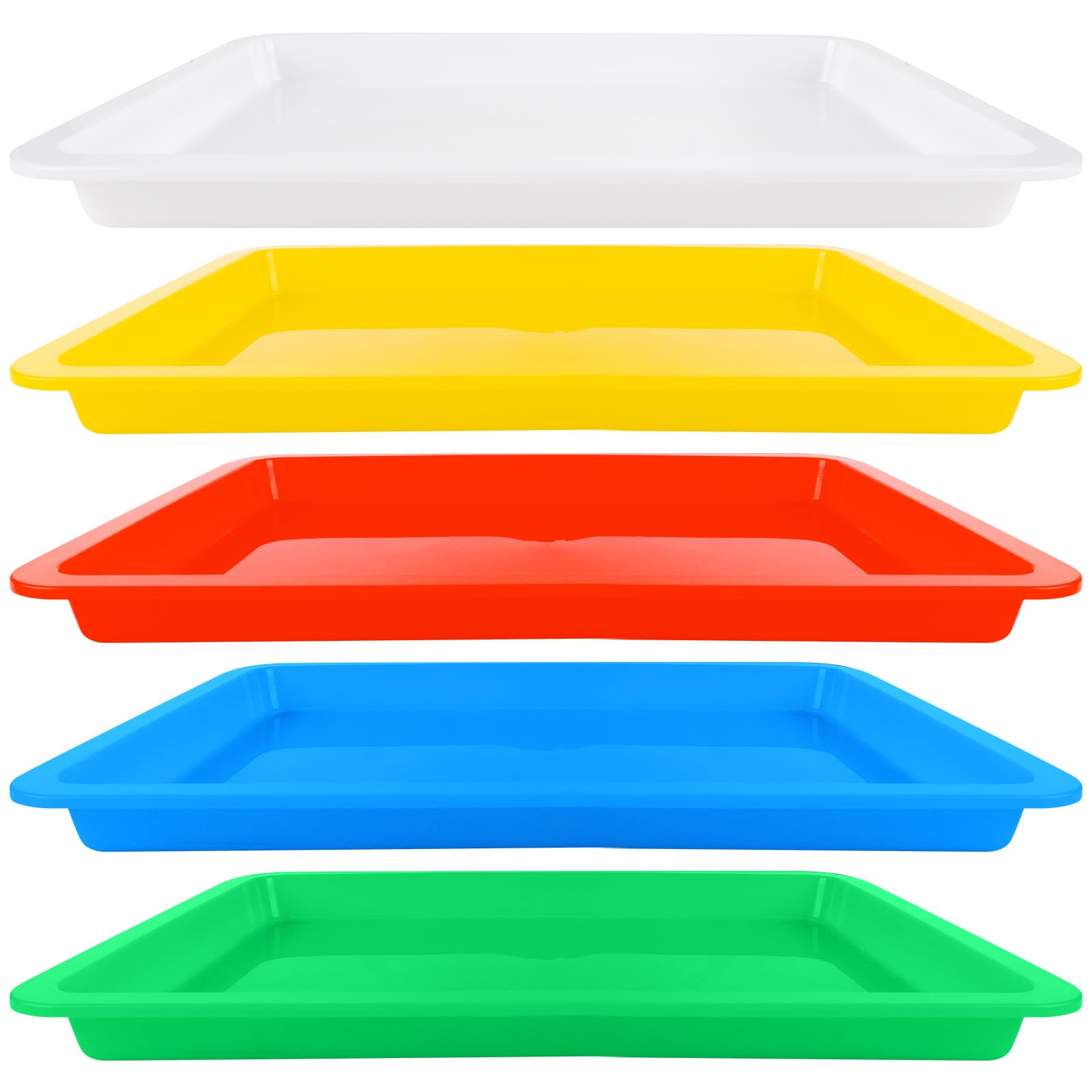 -- This serving tray is suitable for home,school,classroom.kids,handmade craft,DIY projects,painting,beads,marbles,blocks sand drawing,cake,puzzles,bricks. -- Suit for painting,mixing paints,separate storage,playing with slime and play dough,science experiments,paper cuttings and more. -- The stackable design allows you to stack multiple cases conveniently together. -- The surface is easy to wipe clean. -- Material: plastic -- Color: Green,blue,yellow,white,red(Each color has 4 pcs) -- Size: 34 x 25 x 2.6cm/13.4 x 9.8 x 1 inch (LxWxD) 20 x Activity plastic trays -- Please allow about 1-2 cm measurement error. -- Because of the different displays, actual color may vary slightly from image.