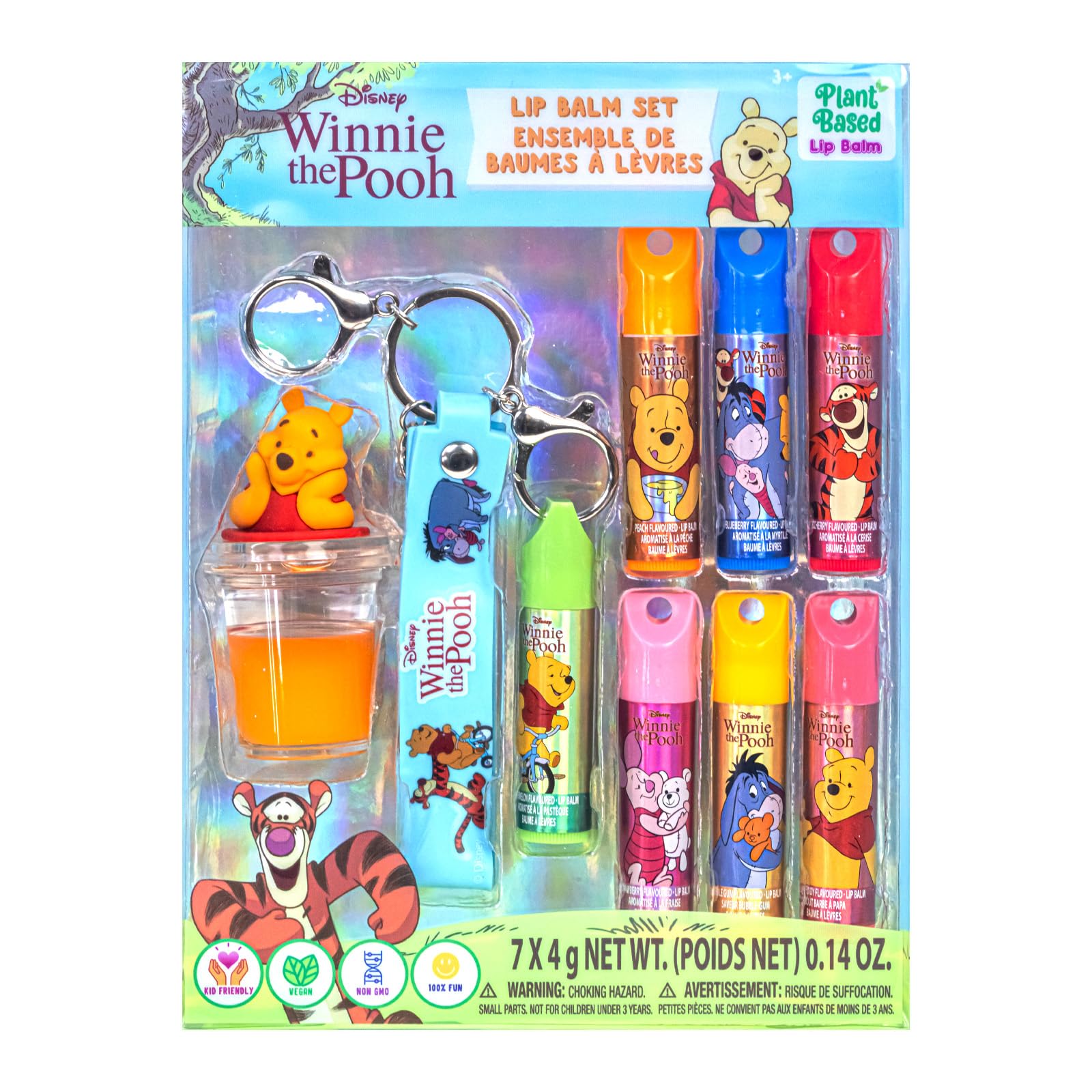 Winnie The Pooh Lip Balm Keychain Accessory Set for Kids, 7 Piece Plant Based Lip Balm with Pooh Themed Keychain Accessories, By Townley Girl