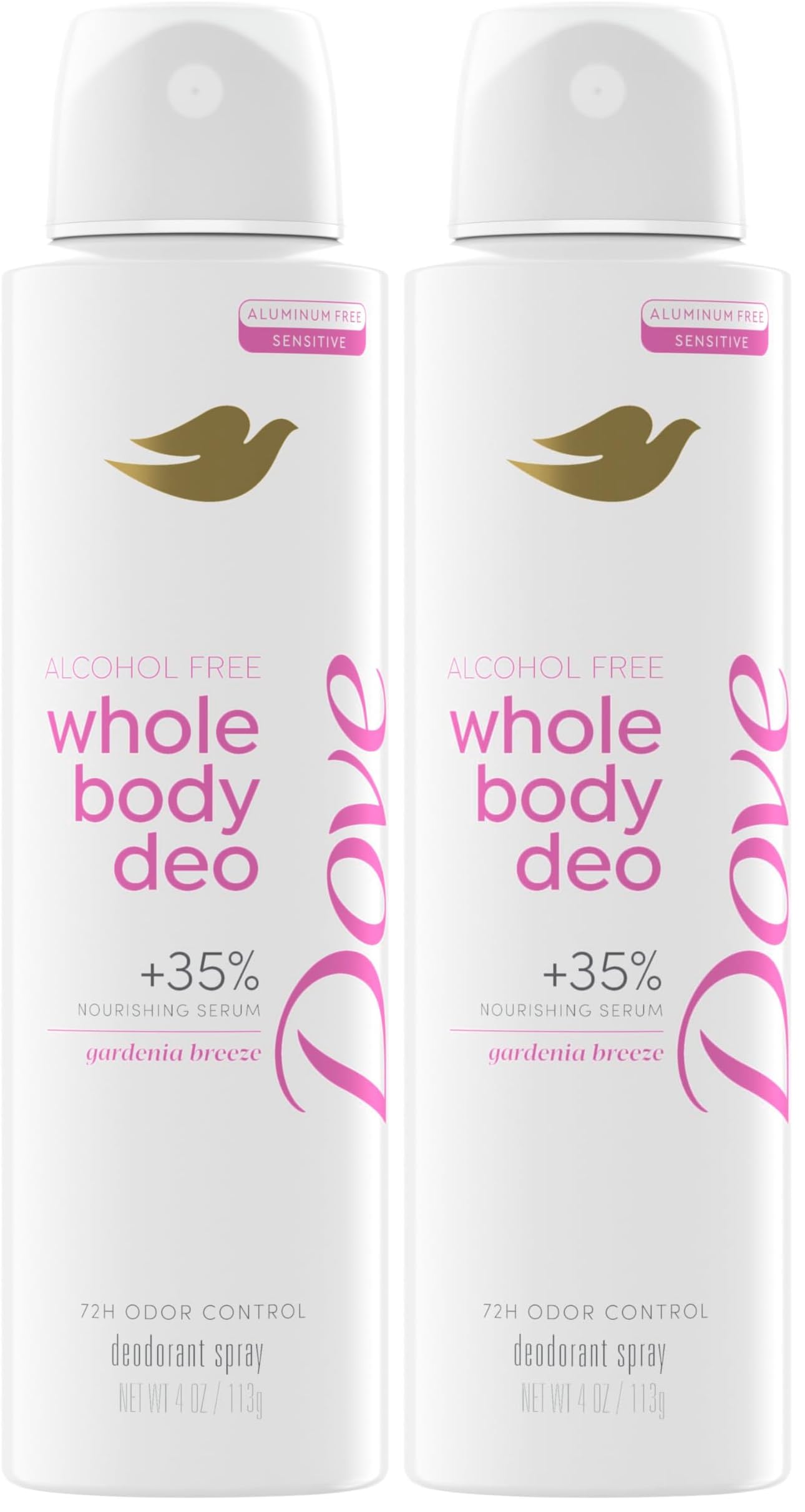 Great deal on Dove Whole Body Deo Alcohol Free Deodorant Spray for Women Gardenia Breeze 4 oz (Pack of 2) at Amazon.